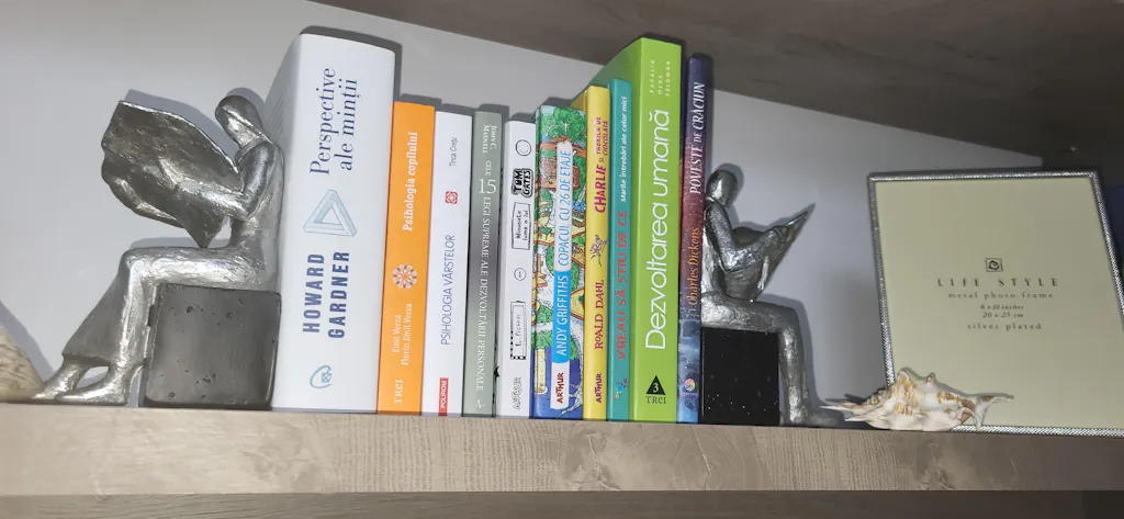 Set 2 suporturi cărți Reading. Completați decorul din biblioteca voastră cu setul de suporturi Reading care aduce o notă stilistică în amenajarea de acasă. Setul de suporturi este realizat din polirășină, cu finisaj antichizat și ilustrează două figurine, care se sprijină de cărți și sunt ideale pentru a împiedica alunecarea acestora.