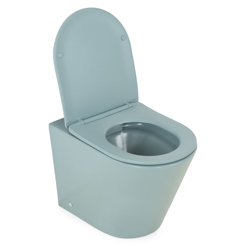 Vas toaletă podea, ceramică Citterio. Include capac UF (duroplast) cu soft-close și balamale metalice. UF este rigid și rezistent la zgârieturi/decolorare, iar designul rimless elimină „canalul” interior pentru curățare mai ușoară și igienă sporită.