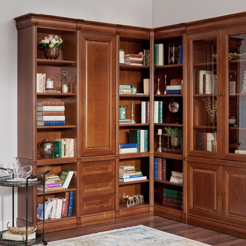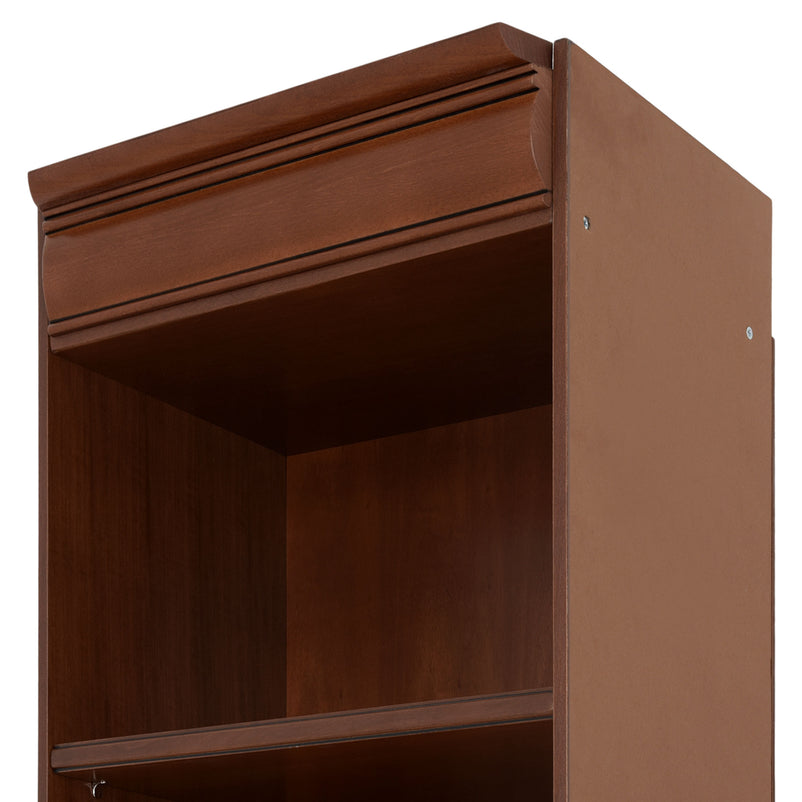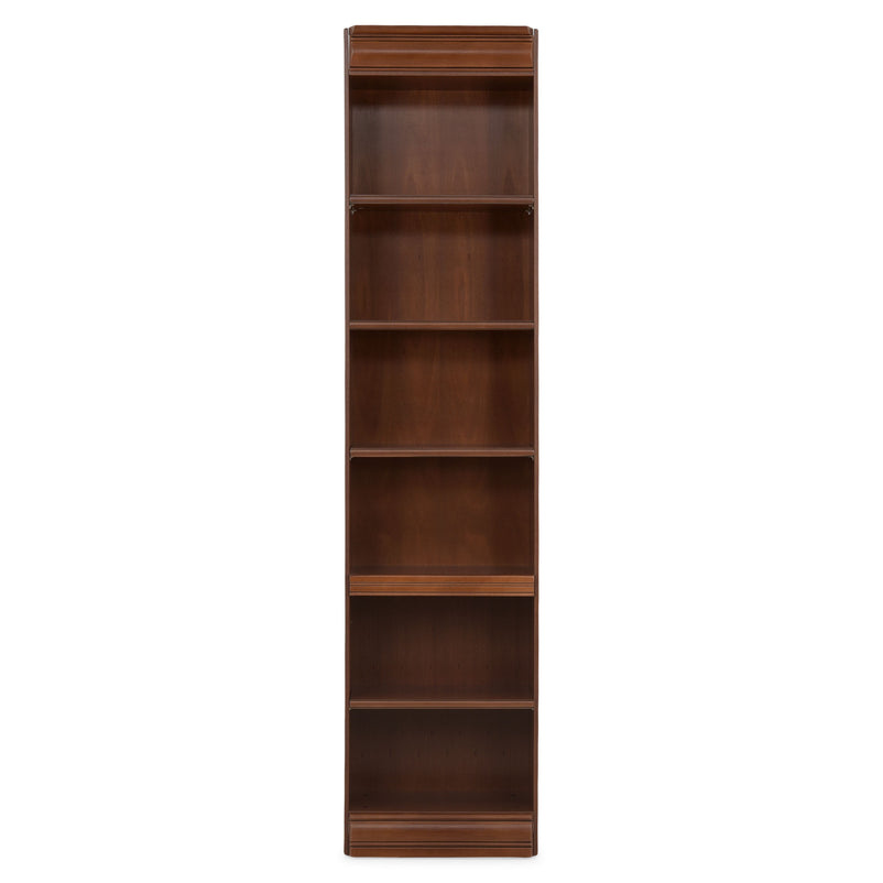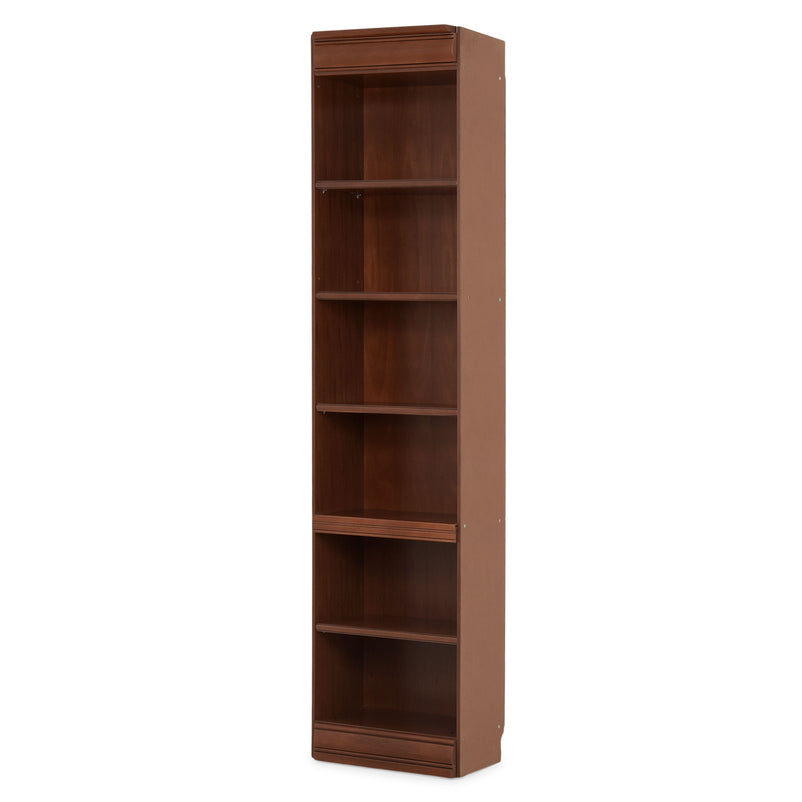Etajeră îngustă cu polițe Louis Philippe. Gama de mobilier Louis Philippe transformă căminul vostru într-o simfonie dedicată clasicului francez. Etajera îngustă cu polițe din gama Louis Philippe este o piesă de mobilier plină de eleganță, grație elementelor ce o definesc. Aceasta este prevăzută cu 5 polițe spațioase unde vă puteți depozita diverse obiecte sau decorațiuni. De asemenea, cromatica este deosebită, aducând decorului un aer nobil. Utilizată ca produs independent, etajera necesită achiziționarea unui set de 2 pereți terminali. Într-o compoziție personalizată, cu mai multe etajere, este necesară achiziționarea de pereți intermediari și a unui set de 2 pereți terminali. Setul de pereți terminali are rol de stabilitate și aduce un plus de eleganță prin faptul că soclul și cornișa se continuă și pe lateral. Peretele intermediar are rol de legătură între două etajere, la interiorul ansamblului. Canturile acestuia sunt rotunjite exprimând eleganță și bun gust.