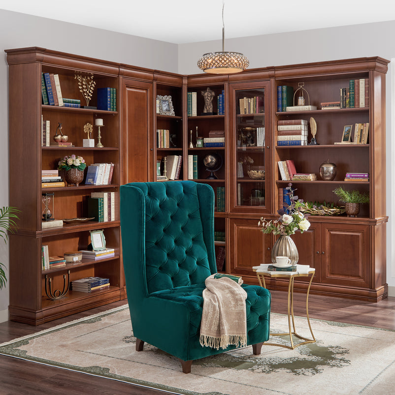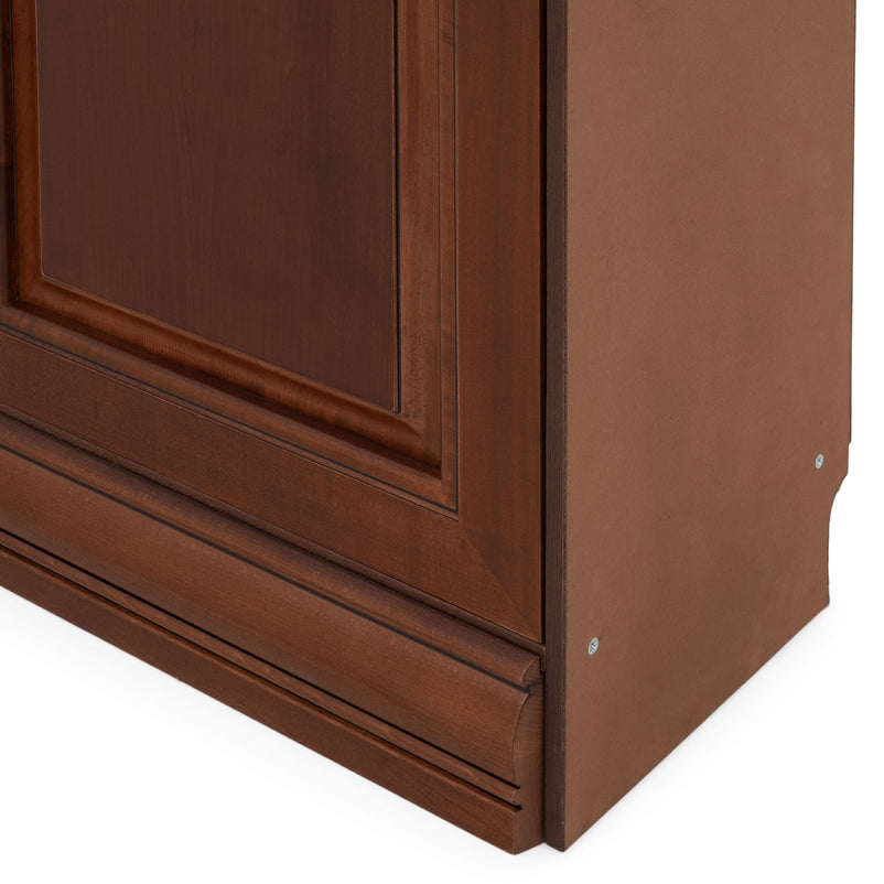 Etajeră lată, 2 uși Louis Philippe. Gama de mobilier Louis Philippe transformă căminul vostru într-o simfonie dedicată clasicului francez. Etajera lată cu 2 uși din gama Louis Philippe este o piesă de mobilier plină de eleganță, grație elementelor ce o definesc. Aceasta este prevăzută cu 4 polițe unde vă puteți depozita diverse obiecte sau decorațiuni. Etajera este realizată din lemn masiv de fag, paltin și tei cu elemente din MDF, PFL și panouri aglomerate din lemn, finisate în culoarea cireșului. De asemenea, cromatica este deosebită, aducând decorului un aer nobil. Utilizată ca produs independent, etajera necesită achiziționarea unui set de 2 pereți terminali. Într-o compoziție personalizată, cu mai multe etajere, este necesară achiziționarea de pereți intermediari și a unui set de 2 pereți terminali. Setul de pereți terminali are rol de stabilitate și aduce un plus de eleganță prin faptul că soclul și cornișa se continuă și pe lateral. Peretele intermediar are rol de legătură între două etajere, la interiorul ansamblului. Canturile acestuia sunt rotunjite exprimând eleganță și bun gust.