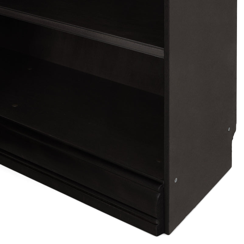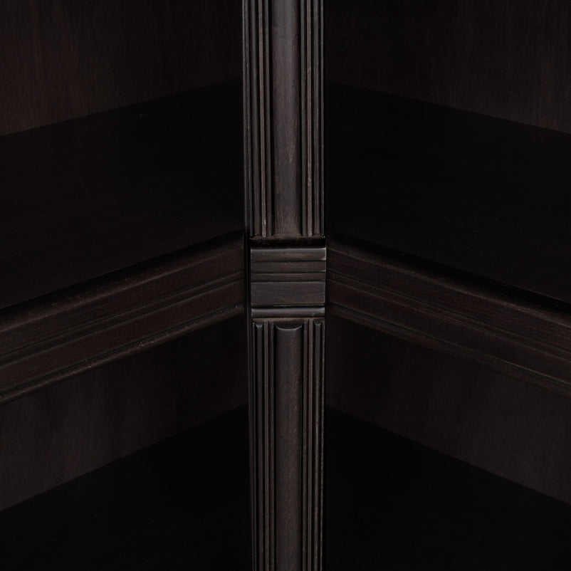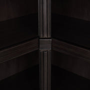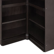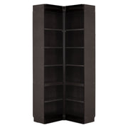 Etajeră colț Chocolate. Gama Chocolate se poate integra cu succes în spații pline de eleganță, datorită aspectului său deosebit, accentuând bunul gust al locului. Etajera din gama Chocolate este rezultatul clasicului francez fără vârstă, combinat cu un finisaj aspectuos. Realizată în linii clasice și decorată cu detalii fine, aceasta amenajează o zonă practică și bine organizată datorită rafturilor, care oferă un spațiu generos pentru așezarea diferitelor decorațiuni sau obiecte. Cromatica este sobră, aducând decorului un aer rafinat. Etajera face parte din ansamblul componibil Chocolate. Aceasta poate fi achiziționată independent sau poate fi cuplată cu alte etajere modulare din aceeași gamă, astfel încât să puteți construi propria configurație, în spațiul dorit. Utilizată ca produs independent, etajera necesită achiziționarea unui set de 2 pereți terminali. Într- o compoziție personalizată, cu mai multe etajere, este necesară achiziționarea de pereți intermediari și a unui set de 2 pereți terminali. Setul de pereți terminali are rol de stabilitate și aduce un plus de eleganță prin faptul că soclul și cornișa se continuă și pe lateral. Peretele intermediar are rol de legătură între două etajere, la interiorul ansamblului.
