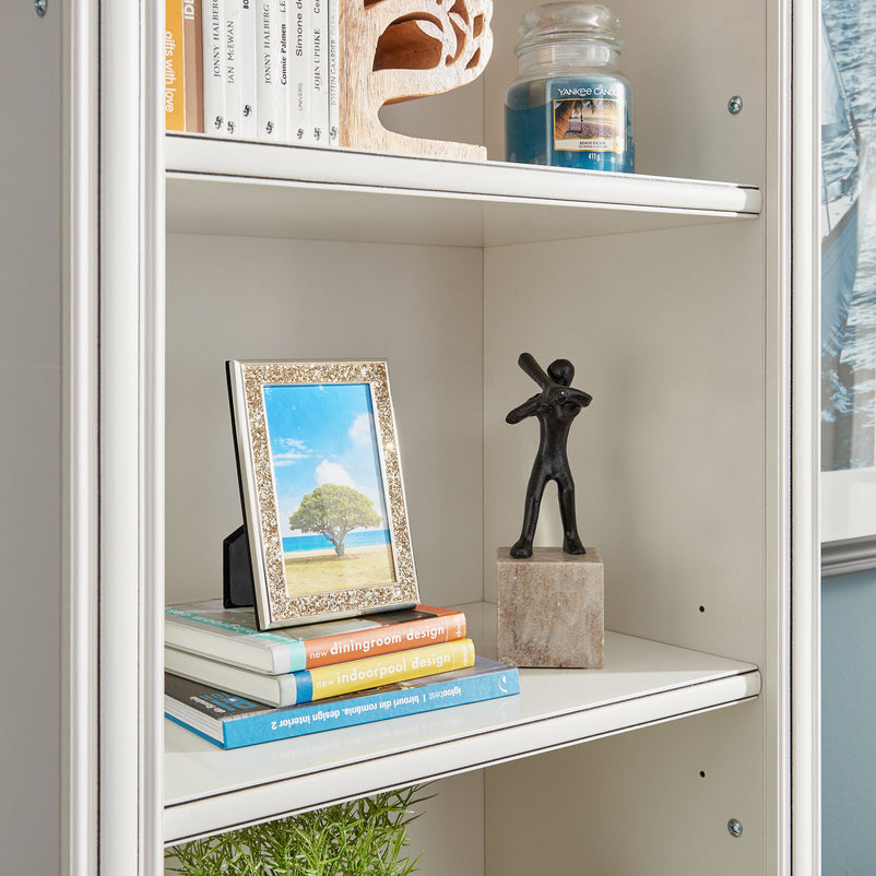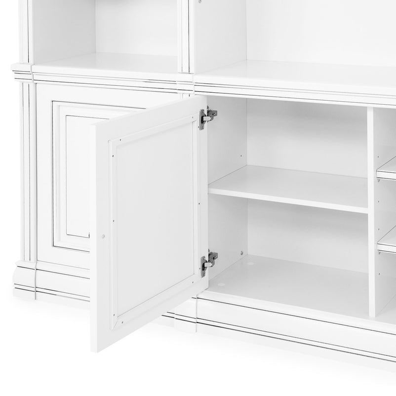Ansamblu living Jazz. Gama de mobilier Jazz evocă eleganță și rafinament prin piesele pe care le propune, acestea fiind realizate pentru a vă crea acasă un ambient plăcut. Cromatica versatilă și liniile fine feminine care brăzdează piesele de mobilier vă oferă liniștea de care aveți nevoie într-un decor divers. Ansamblul pentru living Jazz își demonstrează utilitatea prin numeroasele spații de stocare pe care le oferă, pentru a vă aranja lucrurile și obiectele decorative. Estetica ansamblului combină modernul finisaj alb antichizat și patinat cu formele clasice franceze nemuritoare, reieșind o piesă de mobilier realizată cu stil și delicatețe. De asemenea, ansamblul pentru living are în componența sa 4 uși situate în partea de jos, care sunt prevăzute cu mânere metalice.
