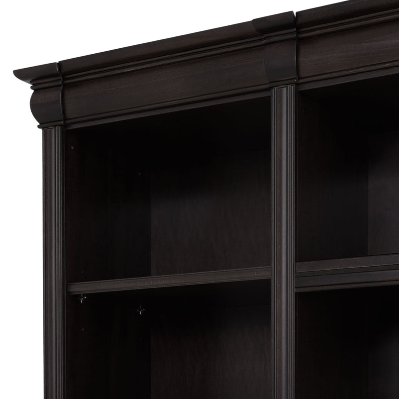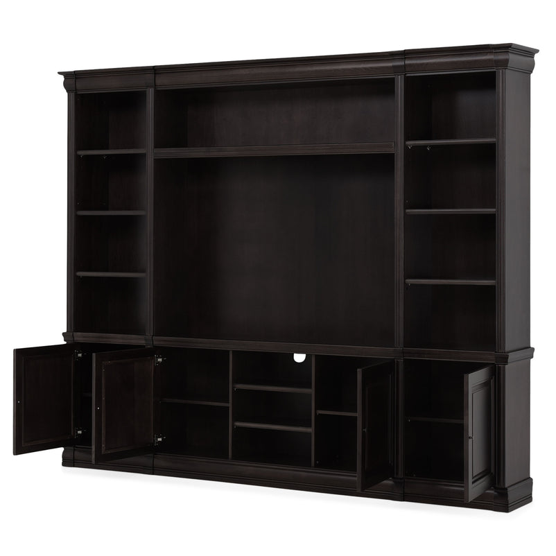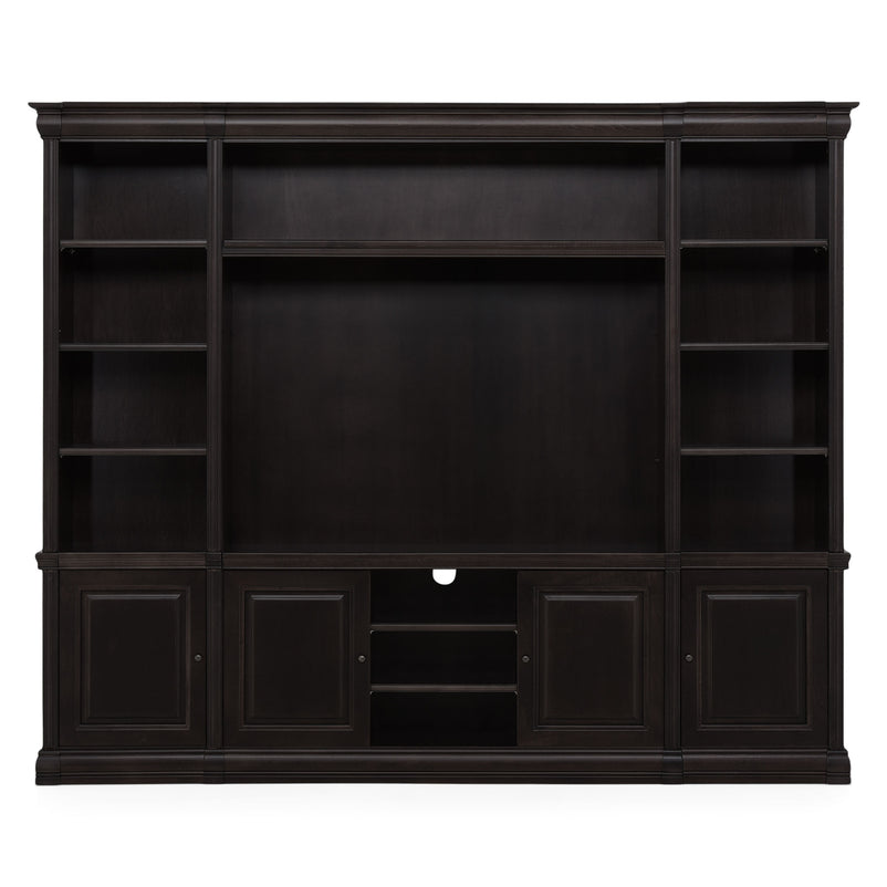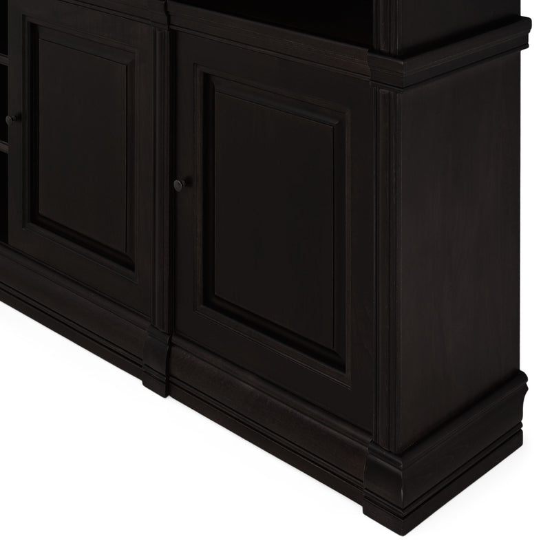 Ansamblu living Chocolate. Gama de mobilier Chocolate relevă sobrietate și eleganță, grație elementelor ce o definesc, rezultând forma clasicului francez fără vârstă. Ansamblul living se potrivește pentru a amenaja o cameră spațioasă. Realizată în linii clasice și decorată cu detalii fine, aceasta amenajează o zonă practică și bine organizată datorită spațiilor de depozitare, care oferă un spațiu generos pentru așezarea diferitelor decorațiuni sau obiecte. Cromatica este sobră, aducând decorului un aer rafinat. Etajera face parte din ansamblul componibil Chocolate. Aceasta poate fi achiziționată independent sau poate fi cuplată cu alte etajere modulare din aceeași gamă, astfel încât să puteți construi propria configurație, în spațiul dorit. Utilizată ca produs independent, etajera necesită achiziționarea unui set de 2 pereți terminali. Într- o compoziție personalizată, cu mai multe etajere, este necesară achiziționarea de pereți intermediari și a unui set de 2 pereți terminali. Setul de pereți terminali are rol de stabilitate și aduce un plus de eleganță prin faptul că soclul și cornișa se continuă și pe lateral. Peretele intermediar are rol de legătură între două etajere, la interiorul ansamblului.