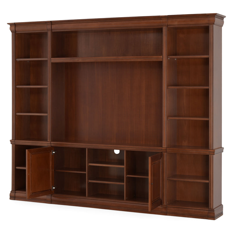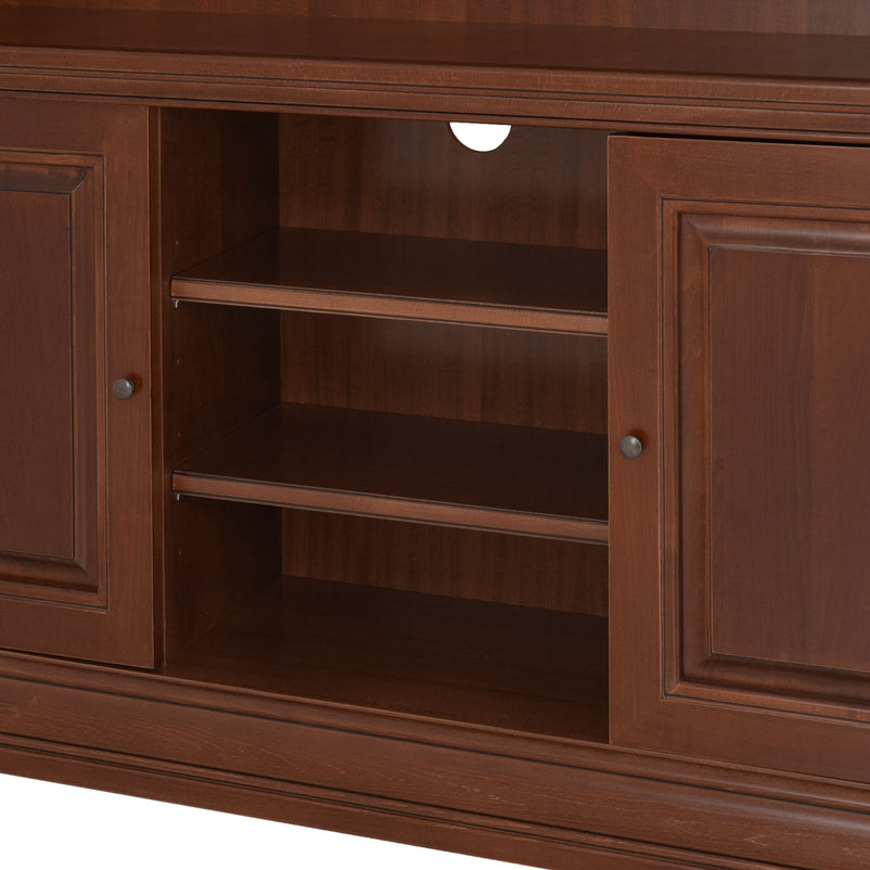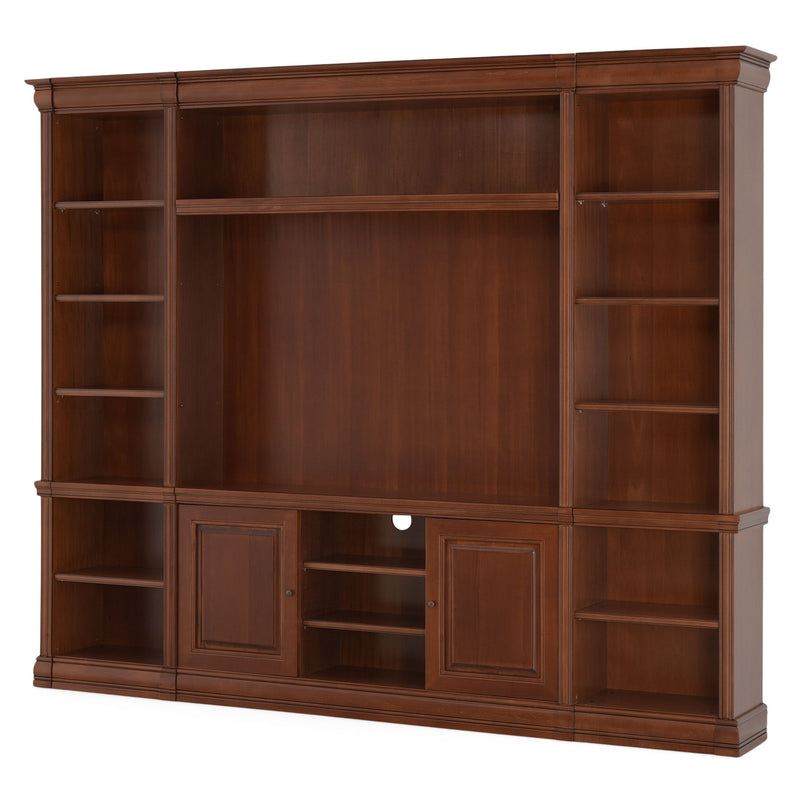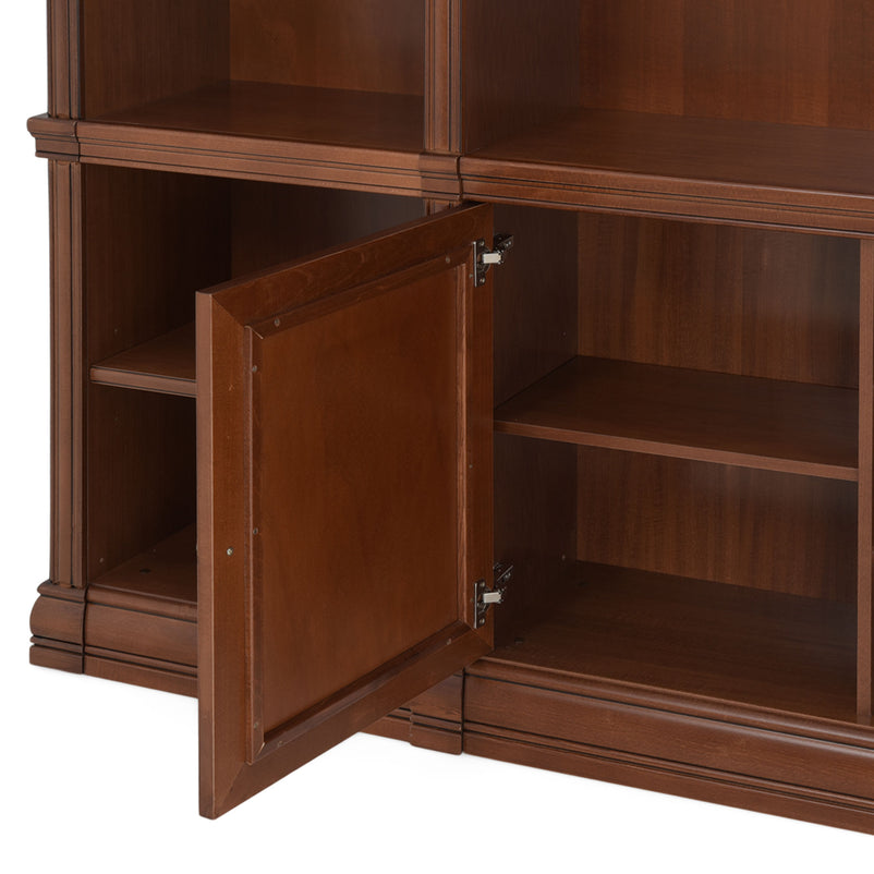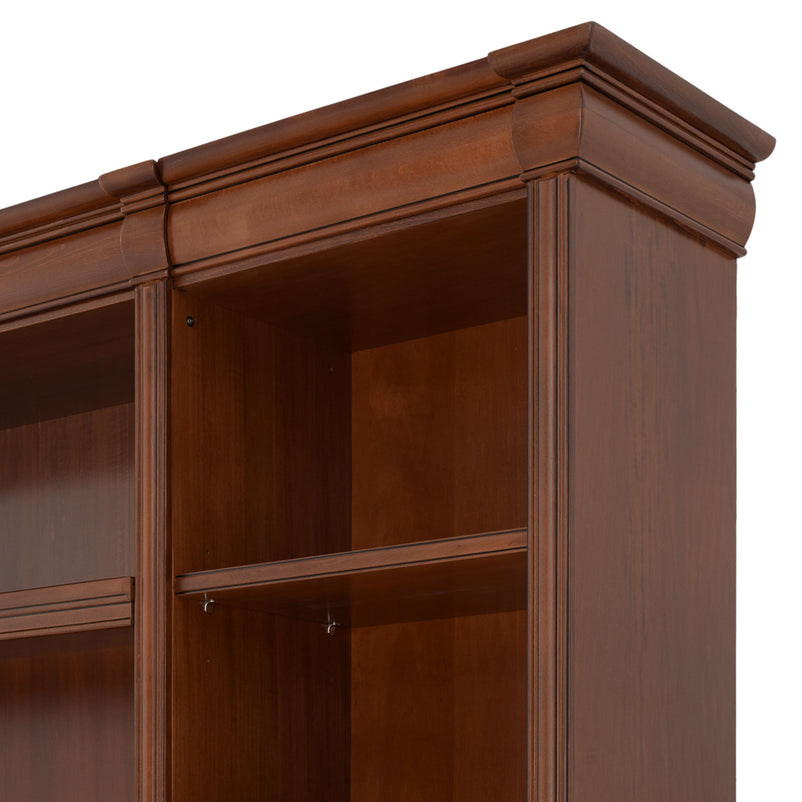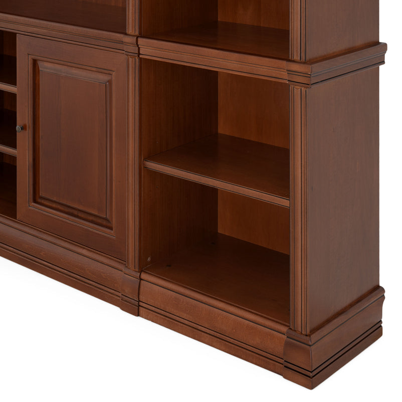 Ansamblu living Louis Philippe. Gama de mobilier Louis Philippe transformă căminul vostru într-o simfonie dedicată clasicului francez. Ansamblul living din gama Louis Philippe este o piesă de mobilier plină de eleganță, grație elementelor ce o definesc. Acesta este prevăzut cu mai multe spații, care vă oferă posibilitatea să vă depozitați lucrurile și obiectele într-un mod organizat și sigur. Ansamblul este realizat din materiale de calitate, finisajul în culoarea cireșului oferindu-i eleganță și stil. De asemenea, cromatica este deosebită, aducând decorului un aer nobil. Utilizată ca produs independent, etajera necesită achiziționarea unui set de 2 pereți terminali. Într-o compoziție personalizată, cu mai multe etajere, este necesară achiziționarea de pereți intermediari și a unui set de 2 pereți terminali. Setul de pereți terminali are rol de stabilitate și aduce un plus de eleganță prin faptul că soclul și cornișa se continuă și pe lateral. Peretele intermediar are rol de legătură între două etajere, la interiorul ansamblului. Canturile acestuia sunt rotunjite exprimând eleganță și bun gust.