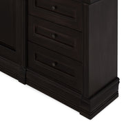 Ansamblu living Chocolate. Gama de mobilier Chocolate relevă sobrietate și eleganță, grație elementelor ce o definesc, rezultând forma clasicului francez fără vârstă. Ansamblul living se potrivește pentru a amenaja o cameră spațioasă. Realizată în linii clasice și decorată cu detalii fine, aceasta amenajează o zonă practică și bine organizată datorită spațiilor de depozitare, care oferă un spațiu generos pentru așezarea diferitelor decorațiuni sau obiecte. Cromatica este sobră, aducând decorului un aer rafinat. Utilizată ca produs independent, etajera necesită achiziționarea unui set de 2 pereți terminali. Într- o compoziție personalizată, cu mai multe etajere, este necesară achiziționarea de pereți intermediari și a unui set de 2 pereți terminali. Setul de pereți terminali are rol de stabilitate și aduce un plus de eleganță prin faptul că soclul și cornișa se continuă și pe lateral. Peretele intermediar are rol de legătură între două etajere, la interiorul ansamblului.