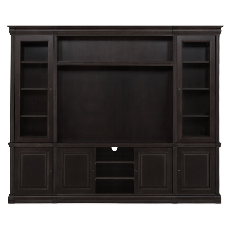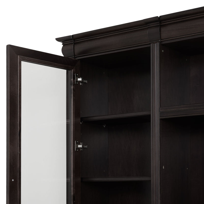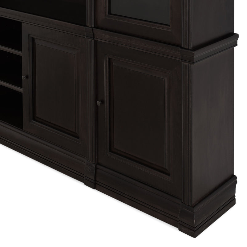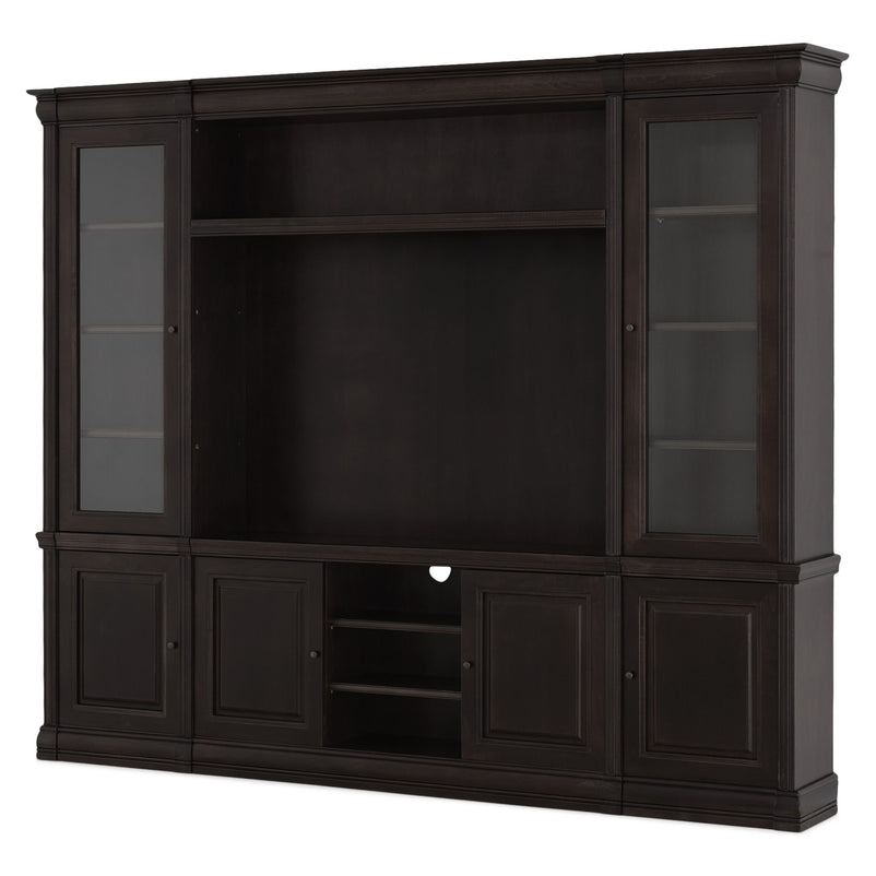 Ansamblu living Chocolate. Gama de mobilier Chocolate relevă sobrietate și eleganță, grație elementelor ce o definesc, rezultând forma clasicului francez fără vârstă. Ansamblul living se potrivește pentru a amenaja o cameră spațioasă. Realizată în linii clasice și decorată cu detalii fine, aceasta amenajează o zonă practică și bine organizată datorită spațiilor de depozitare, care oferă un spațiu generos pentru așezarea diferitelor decorațiuni sau obiecte. Cromatica este sobră, aducând decorului un aer rafinat. Utilizată ca produs independent, etajera necesită achiziționarea unui set de 2 pereți terminali. Într- o compoziție personalizată, cu mai multe etajere, este necesară achiziționarea de pereți intermediari și a unui set de 2 pereți terminali. Setul de pereți terminali are rol de stabilitate și aduce un plus de eleganță prin faptul că soclul și cornișa se continuă și pe lateral. Peretele intermediar are rol de legătură între două etajere, la interiorul ansamblului.