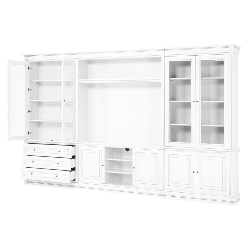 - 1x etajeră lată 3 sertare 2 uși sticlă: L. 103 x l. 34 x H. 230 cm.