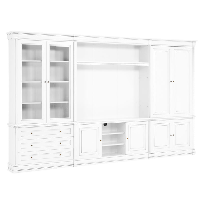 Ansamblu living Jazz. Gama de mobilier Jazz evocă eleganță și rafinament prin piesele pe care le propune, acestea fiind realizate pentru a vă crea acasă un ambient plăcut. Cromatica versatilă și liniile fine feminine care brăzdează piesele de mobilier vă oferă liniștea de care aveți nevoie într-un decor divers. Ansamblul pentru living Jazz își demonstrează utilitatea prin numeroasele spații de stocare pe care le oferă, pentru a vă aranja lucrurile și obiectele decorative. Estetica ansamblului combină modernul finisaj alb antichizat și patinat cu formele clasice franceze nemuritoare, reieșind o piesă de mobilier realizată cu stil și delicatețe. Ușile și sertarele ansamblului sunt prevăzute cu mânere metalice în culoarea bronzului, care vor oferi un contrast minunat piesei. De asemenea, cele 3 sertare completează cu succes întregul ansamblu, în ele putând să depozitați ceea ce vă doriți.