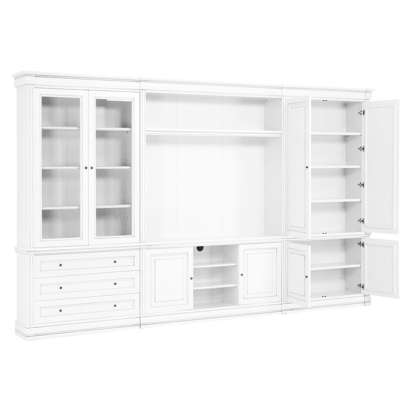 - 1x etajeră lată 3 sertare 2 uși sticlă: L. 103 x l. 34 x H. 230 cm.
