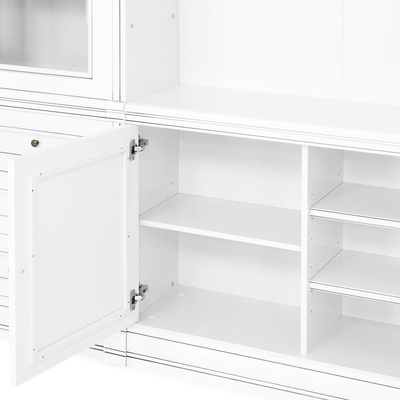 - 1x etajeră lată 2 uși inferioare+2 uși pline: L. 103 x l. 34 x H. 230 cm.