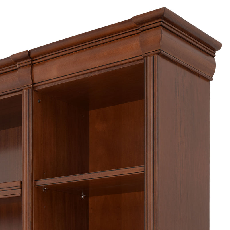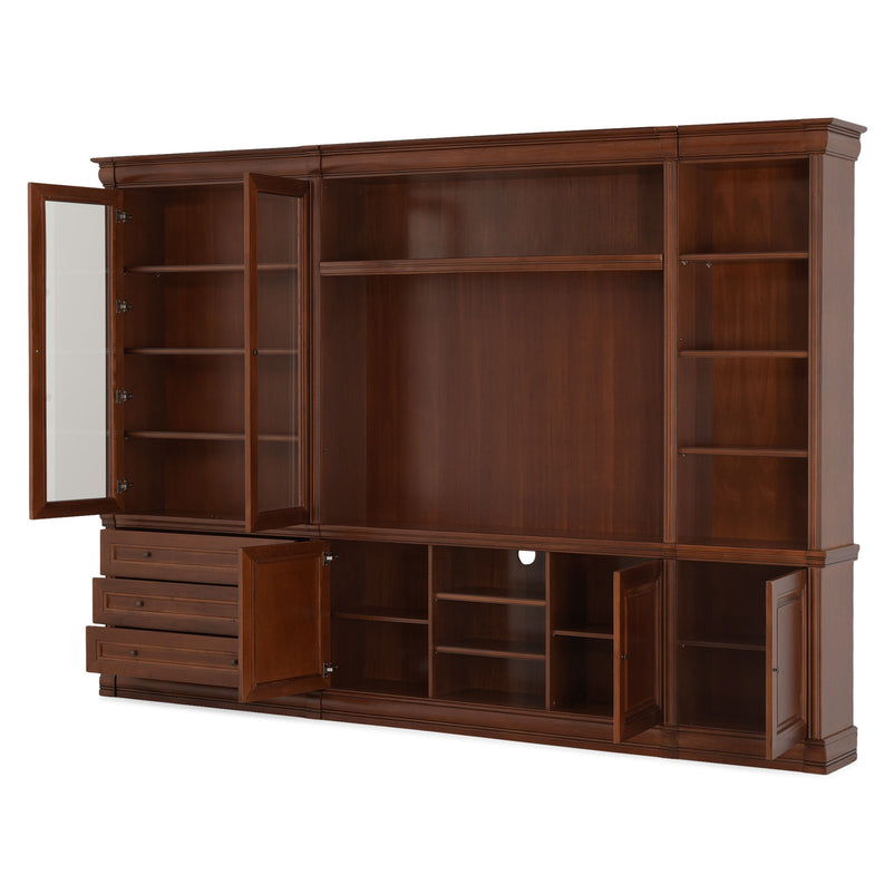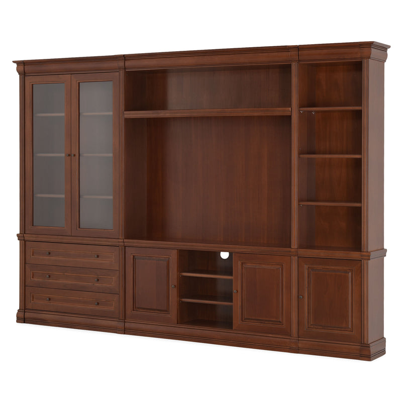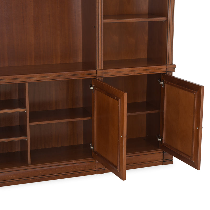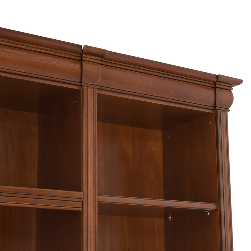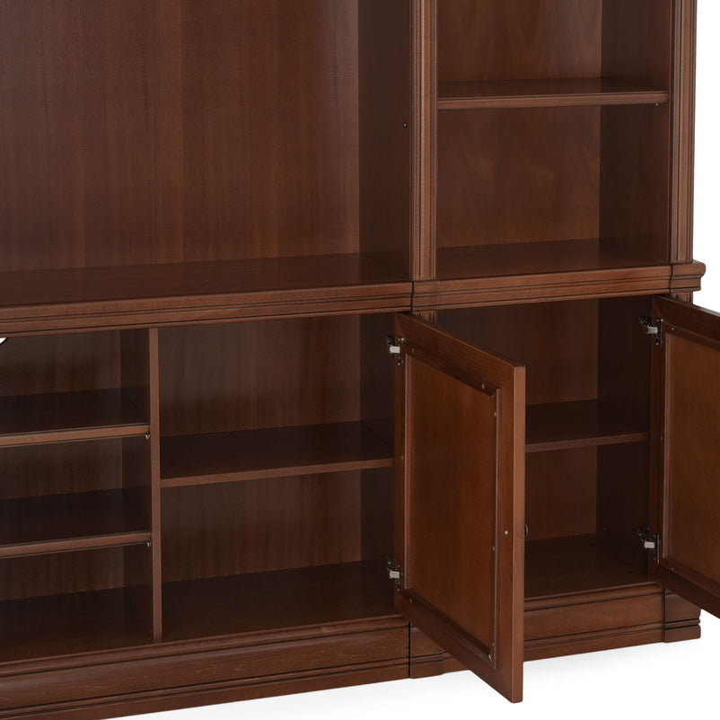 Ansamblu living Louis Philippe. Gama de mobilier Louis Philippe transformă căminul vostru într-o simfonie dedicată clasicului francez. Ansamblul living din gama Louis Philippe este o piesă de mobilier plină de eleganță, grație elementelor ce o definesc. Acesta este prevăzut cu mai multe spații, care vă oferă posibilitatea să vă depozitați lucrurile și obiectele într-un mod organizat și sigur. Ansamblul este realizat din materiale de calitate, finisajul în culoarea cireșului oferindu-i eleganță și stil. De asemenea, cromatica este deosebită, aducând decorului un aer nobil. Utilizată ca produs independent, etajera necesită achiziționarea unui set de 2 pereți terminali. Într-o compoziție personalizată, cu mai multe etajere, este necesară achiziționarea de pereți intermediari și a unui set de 2 pereți terminali. Setul de pereți terminali are rol de stabilitate și aduce un plus de eleganță prin faptul că soclul și cornișa se continuă și pe lateral. Peretele intermediar are rol de legătură între două etajere, la interiorul ansamblului. Canturile acestuia sunt rotunjite exprimând eleganță și bun gust.