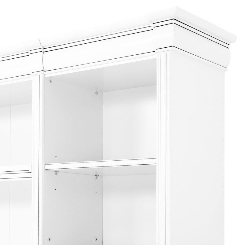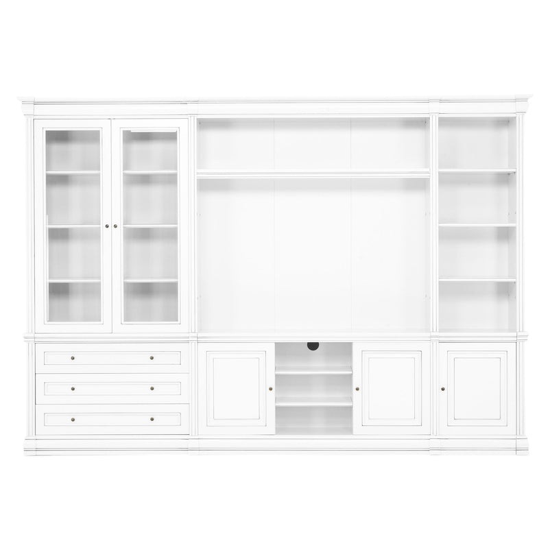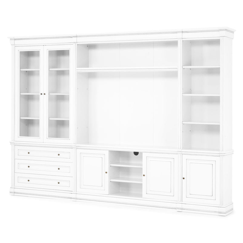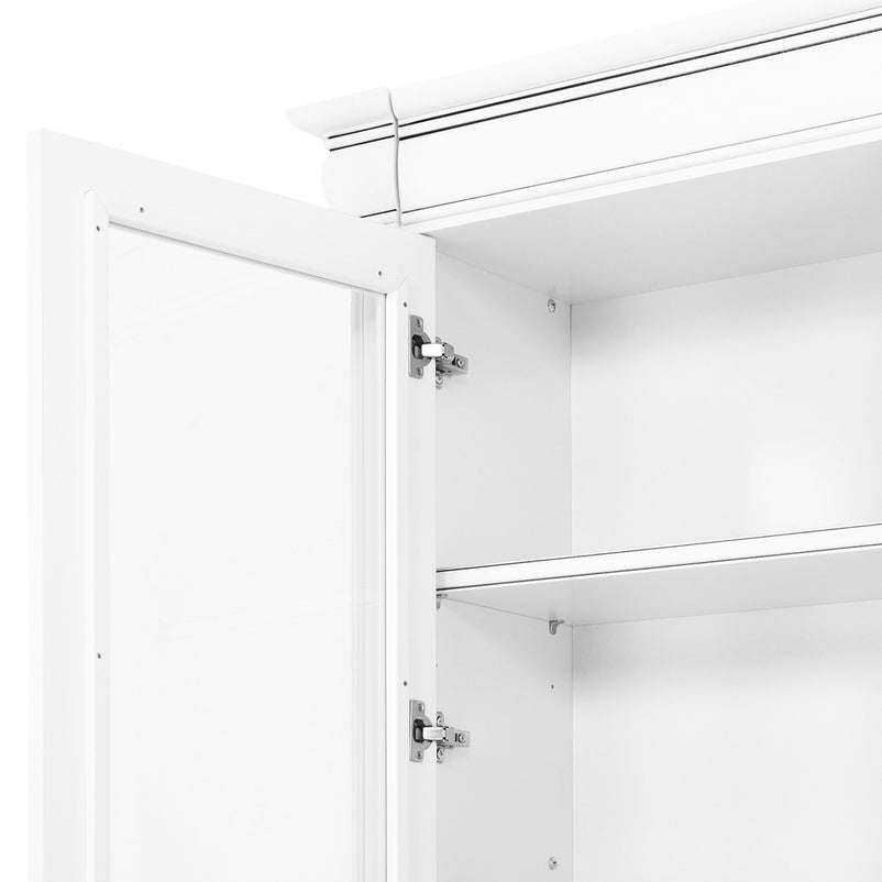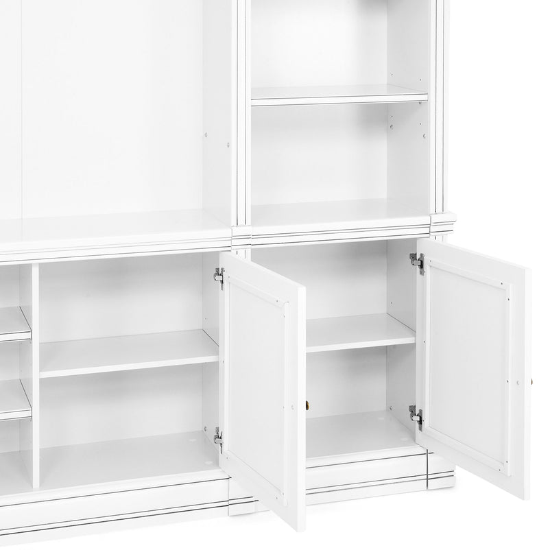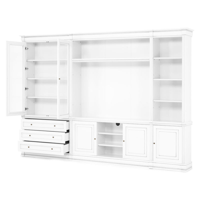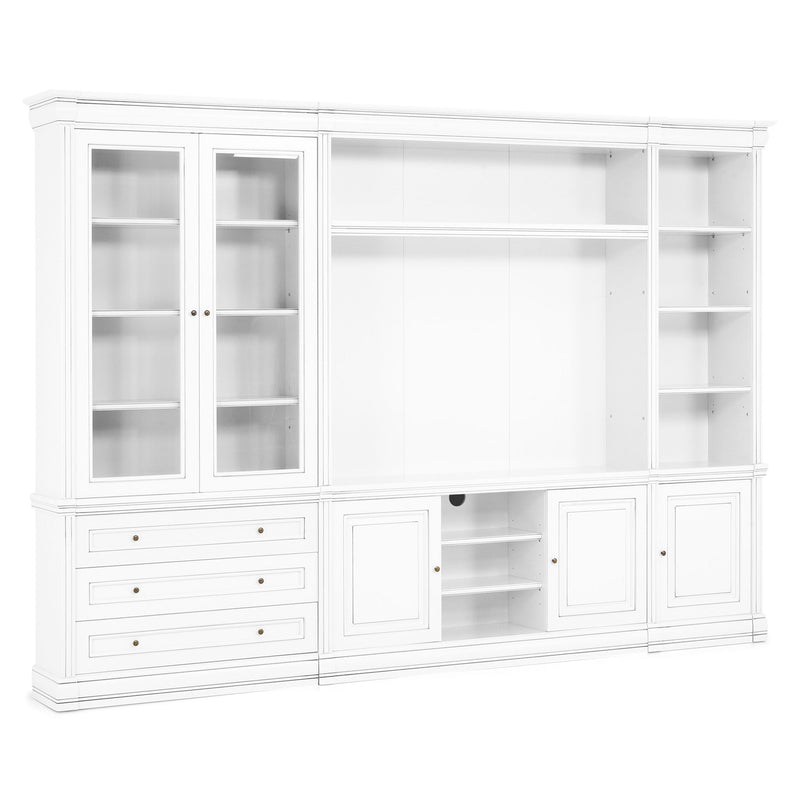 - 1x etajeră lată, 3 sertare, 2 uși sticlă: L. 103 x l. 34 x H. 230 cm.