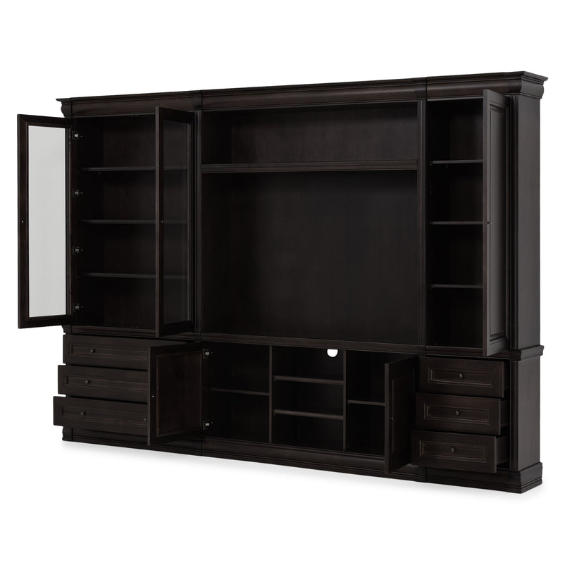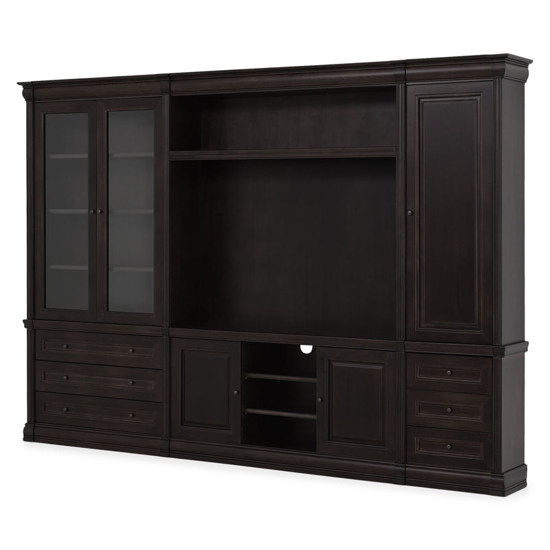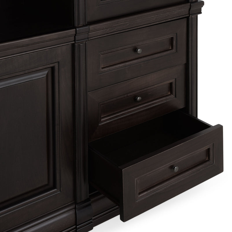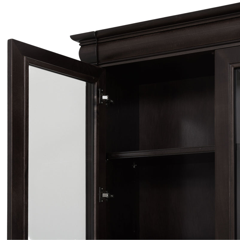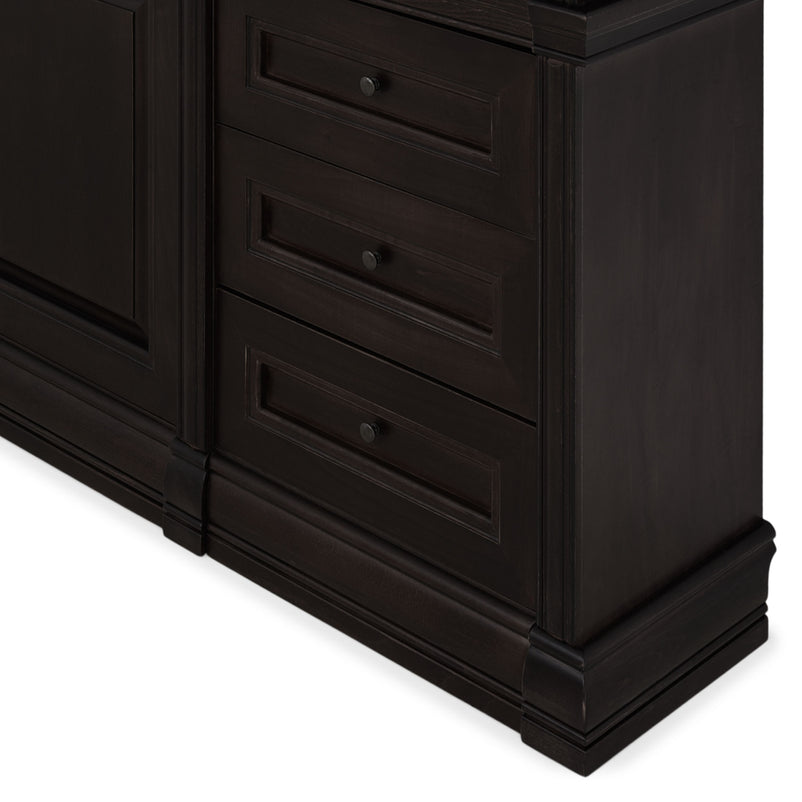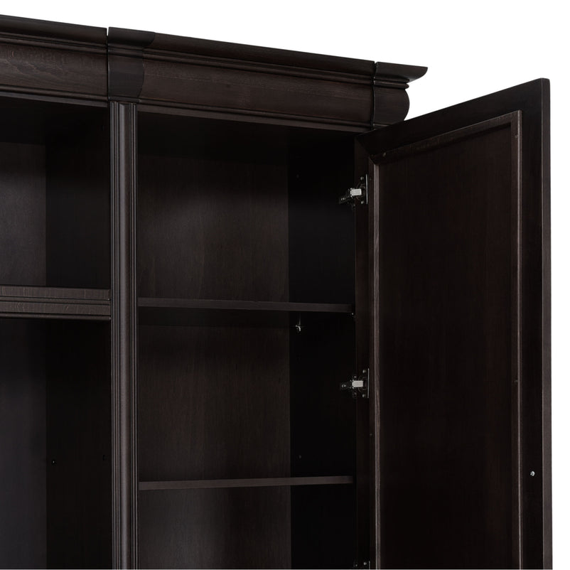 Ansamblu living Chocolate. Gama de mobilier Chocolate relevă sobrietate și eleganță, grație elementelor ce o definesc, rezultând forma clasicului francez fără vârstă. Ansamblul living se potrivește pentru a amenaja o cameră spațioasă. Realizată în linii clasice și decorată cu detalii fine, aceasta amenajează o zonă practică și bine organizată datorită spațiilor de depozitare, care oferă un spațiu generos pentru așezarea diferitelor decorațiuni sau obiecte. Cromatica este sobră, aducând decorului un aer rafinat. Utilizată ca produs independent, etajera necesită achiziționarea unui set de 2 pereți terminali. Într- o compoziție personalizată, cu mai multe etajere, este necesară achiziționarea de pereți intermediari și a unui set de 2 pereți terminali. Setul de pereți terminali are rol de stabilitate și aduce un plus de eleganță prin faptul că soclul și cornișa se continuă și pe lateral. Peretele intermediar are rol de legătură între două etajere, la interiorul ansamblului.
