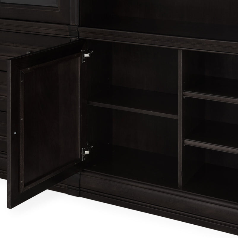 - 1x etajeră lată, 3 sertare, 2 uși sticlă: L. 103 x l. 34 x H. 230 cm.