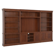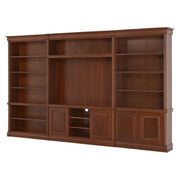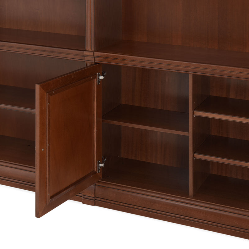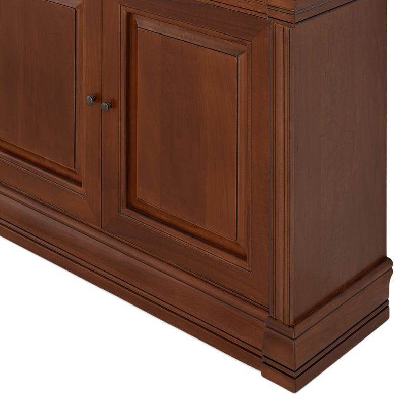 Ansamblu living Louis Philippe. Gama de mobilier Louis Philippe transformă căminul vostru într-o simfonie dedicată clasicului francez. Ansamblul living din gama Louis Philippe este o piesă de mobilier plină de eleganță, grație elementelor ce o definesc. Acesta este prevăzut cu mai multe spații, care vă oferă posibilitatea să vă depozitați lucrurile și obiectele într-un mod organizat și sigur. Ansamblul este realizat din materiale de calitate, finisajul în culoarea cireșului oferindu-i eleganță și stil. De asemenea, cromatica este deosebită, aducând decorului un aer nobil. Utilizată ca produs independent, etajera necesită achiziționarea unui set de 2 pereți terminali. Într-o compoziție personalizată, cu mai multe etajere, este necesară achiziționarea de pereți intermediari și a unui set de 2 pereți terminali. Setul de pereți terminali are rol de stabilitate și aduce un plus de eleganță prin faptul că soclul și cornișa se continuă și pe lateral. Peretele intermediar are rol de legătură între două etajere, la interiorul ansamblului. Canturile acestuia sunt rotunjite exprimând eleganță și bun gust.