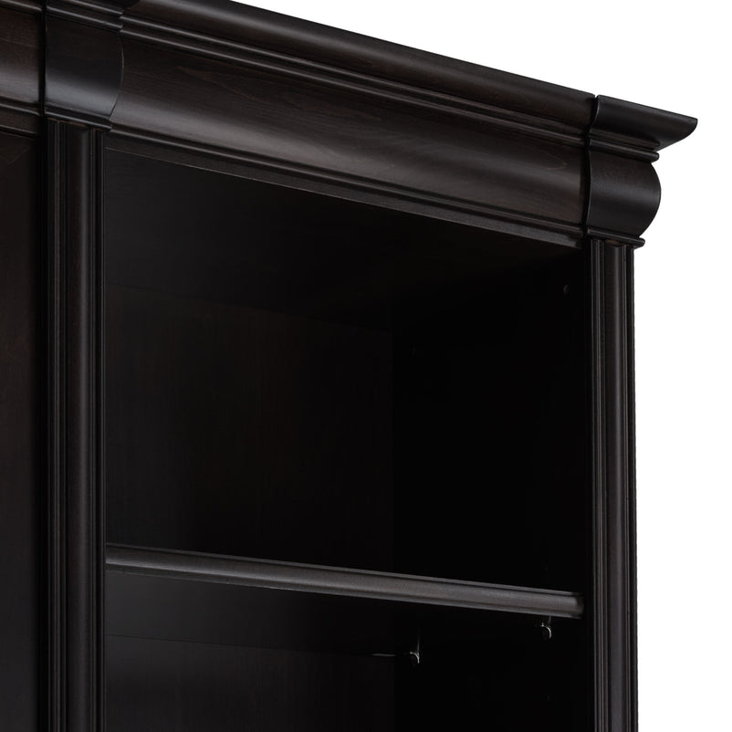 Ansamblu living Chocolate. Gama de mobilier Chocolate relevă sobrietate și eleganță, grație elementelor ce o definesc, rezultând forma clasicului francez fără vârstă. Ansamblul living se potrivește pentru a amenaja o cameră spațioasă. Realizată în linii clasice și decorată cu detalii fine, aceasta amenajează o zonă practică și bine organizată datorită spațiilor de depozitare, care oferă un spațiu generos pentru așezarea diferitelor decorațiuni sau obiecte. Cromatica este sobră, aducând decorului un aer rafinat. Utilizată ca produs independent, etajera necesită achiziționarea unui set de 2 pereți terminali. Într- o compoziție personalizată, cu mai multe etajere, este necesară achiziționarea de pereți intermediari și a unui set de 2 pereți terminali. Setul de pereți terminali are rol de stabilitate și aduce un plus de eleganță prin faptul că soclul și cornișa se continuă și pe lateral. Peretele intermediar are rol de legătură între două etajere, la interiorul ansamblului.