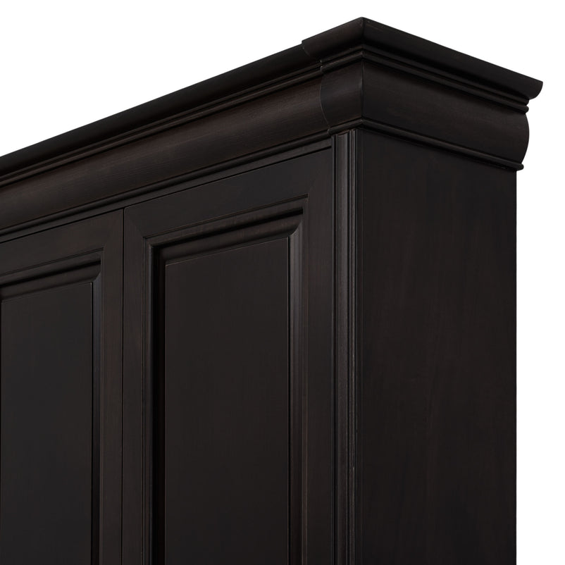 Ansamblu living Chocolate. Gama de mobilier Chocolate relevă sobrietate și eleganță, grație elementelor ce o definesc, rezultând forma clasicului francez fără vârstă. Ansamblul living se potrivește pentru a amenaja o cameră spațioasă. Realizată în linii clasice și decorată cu detalii fine, aceasta amenajează o zonă practică și bine organizată datorită spațiilor de depozitare, care oferă un spațiu generos pentru așezarea diferitelor decorațiuni sau obiecte. Cromatica este sobră, aducând decorului un aer rafinat. Utilizată ca produs independent, etajera necesită achiziționarea unui set de 2 pereți terminali. Într- o compoziție personalizată, cu mai multe etajere, este necesară achiziționarea de pereți intermediari și a unui set de 2 pereți terminali. Setul de pereți terminali are rol de stabilitate și aduce un plus de eleganță prin faptul că soclul și cornișa se continuă și pe lateral. Peretele intermediar are rol de legătură între două etajere, la interiorul ansamblului.