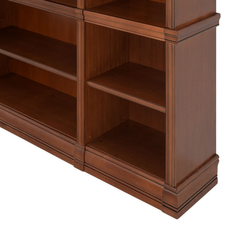 Ansamblu living Louis Philippe. Gama de mobilier Louis Philippe transformă căminul vostru într-o simfonie dedicată clasicului francez. Ansamblul living din gama Louis Philippe este o piesă de mobilier plină de eleganță, grație elementelor ce o definesc. Acesta este prevăzut cu mai multe spații, care vă oferă posibilitatea să vă depozitați lucrurile și obiectele într-un mod organizat și sigur. Ansamblul este realizat din materiale de calitate, finisajul în culoarea cireșului oferindu-i eleganță și stil. De asemenea, cromatica este deosebită, aducând decorului un aer nobil. Utilizată ca produs independent, etajera necesită achiziționarea unui set de 2 pereți terminali. Într-o compoziție personalizată, cu mai multe etajere, este necesară achiziționarea de pereți intermediari și a unui set de 2 pereți terminali. Setul de pereți terminali are rol de stabilitate și aduce un plus de eleganță prin faptul că soclul și cornișa se continuă și pe lateral. Peretele intermediar are rol de legătură între două etajere, la interiorul ansamblului. Canturile acestuia sunt rotunjite exprimând eleganță și bun gust.