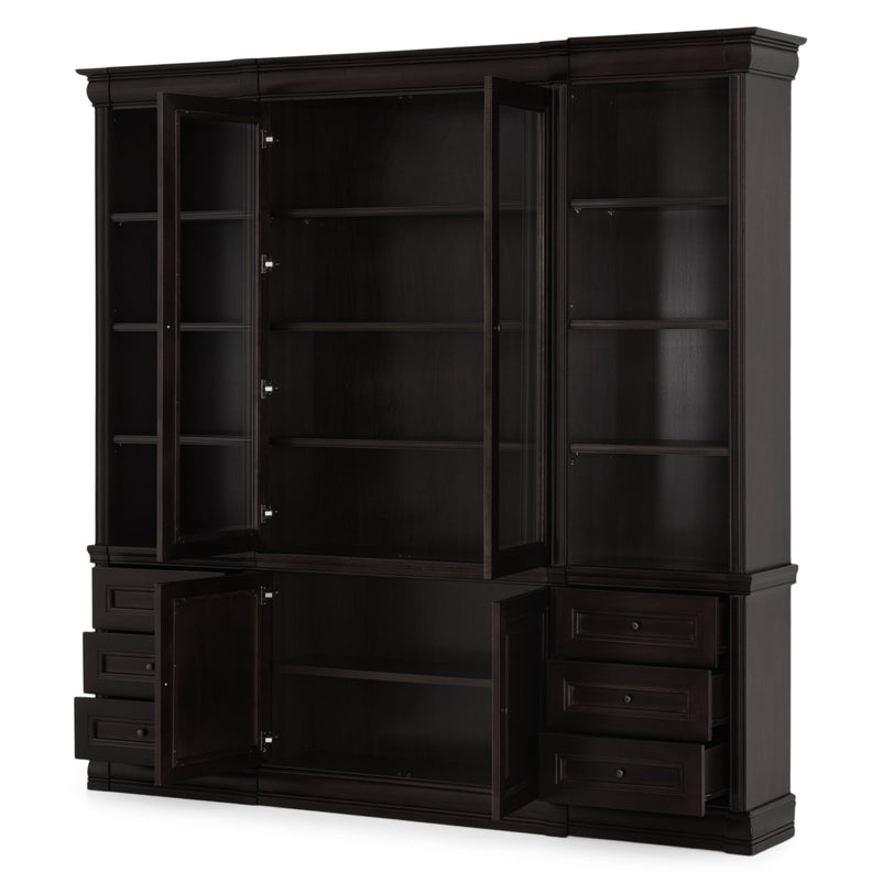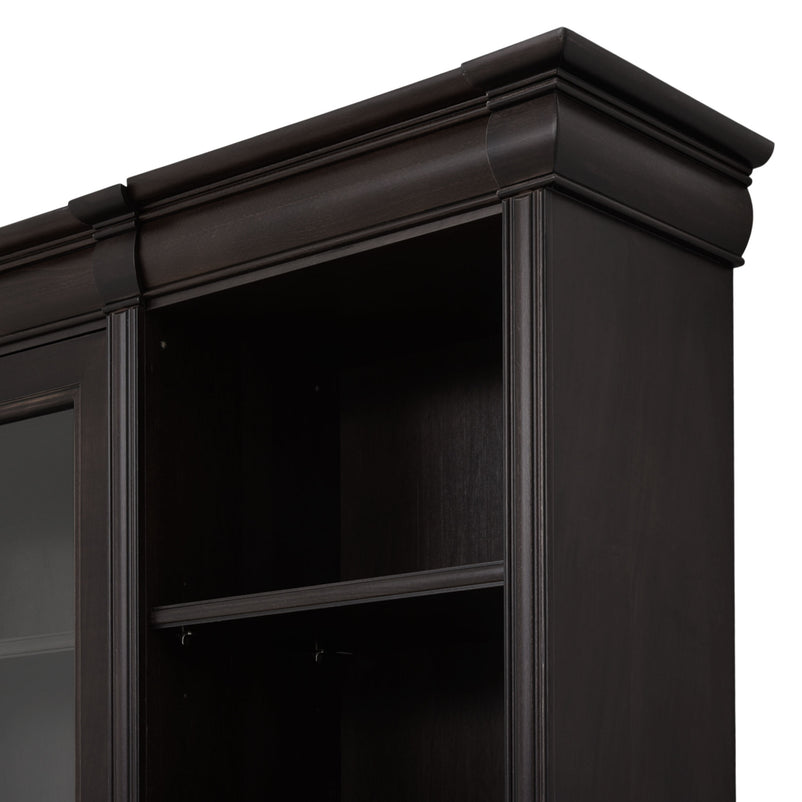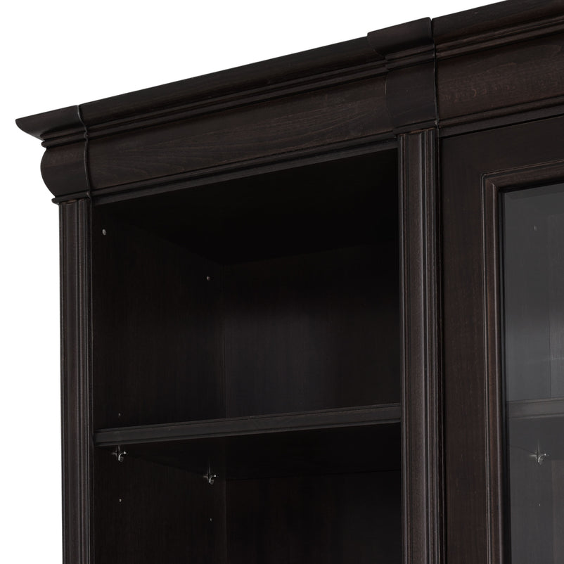Ansamblu living Chocolate. Gama de mobilier Chocolate relevă sobrietate și eleganță, grație elementelor ce o definesc, rezultând forma clasicului francez fără vârstă. Ansamblul living se potrivește pentru a amenaja o cameră spațioasă. Realizată în linii clasice și decorată cu detalii fine, aceasta amenajează o zonă practică și bine organizată datorită spațiilor de depozitare, care oferă un spațiu generos pentru așezarea diferitelor decorațiuni sau obiecte. Cromatica este sobră, aducând decorului un aer rafinat. Utilizată ca produs independent, etajera necesită achiziționarea unui set de 2 pereți terminali. Într- o compoziție personalizată, cu mai multe etajere, este necesară achiziționarea de pereți intermediari și a unui set de 2 pereți terminali. Setul de pereți terminali are rol de stabilitate și aduce un plus de eleganță prin faptul că soclul și cornișa se continuă și pe lateral. Peretele intermediar are rol de legătură între două etajere, la interiorul ansamblului.