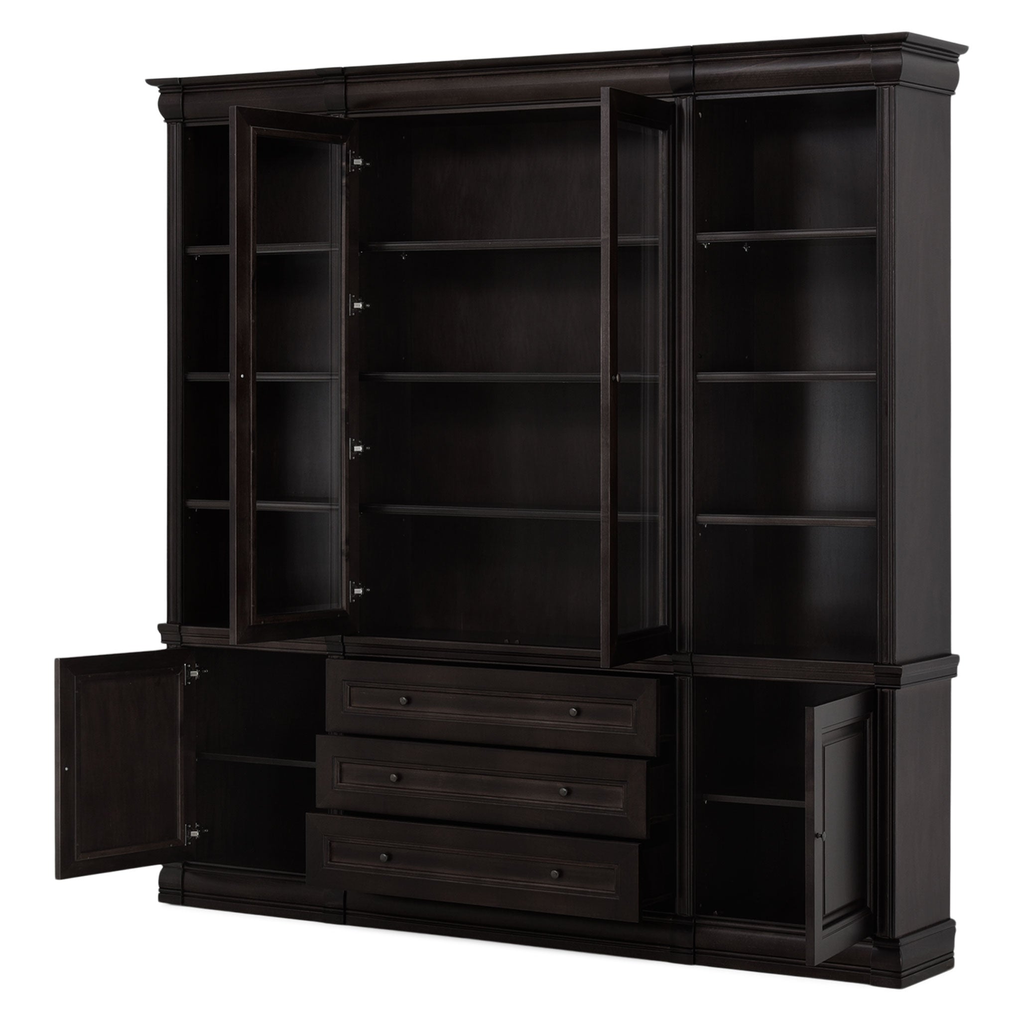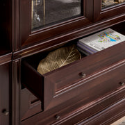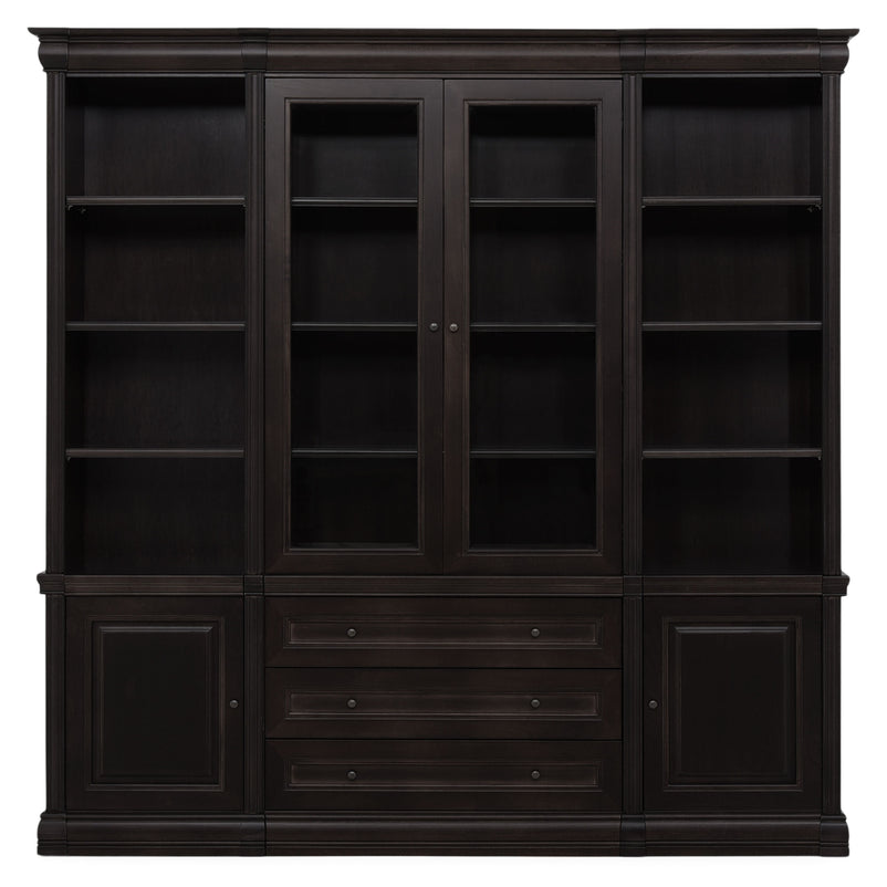 - 1x etajeră lată, 3 sertare, 2 uși sticlă: L. 103 x l. 34 x H. 230 cm.