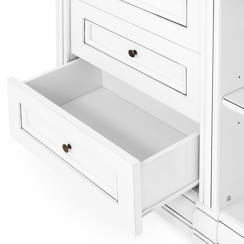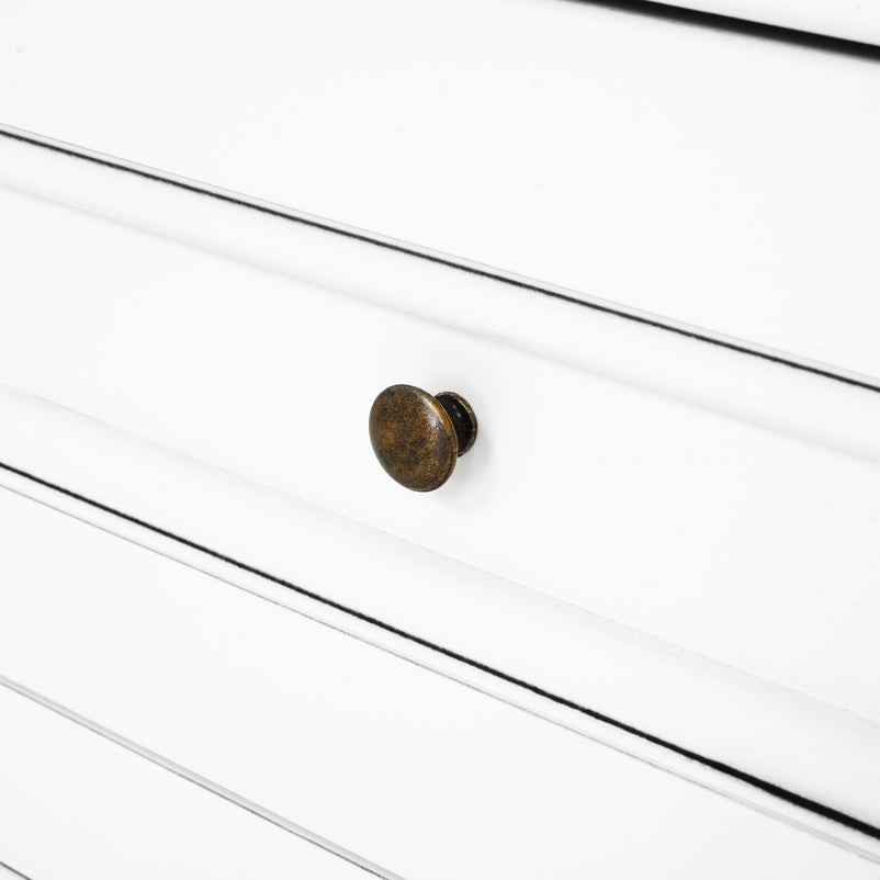 Ansamblu living Jazz. Gama de mobilier Jazz evocă eleganță și rafinament prin piesele pe care le propune, acestea fiind realizate pentru a vă crea acasă un ambient plăcut. Cromatica versatilă și liniile fine feminine care brăzdează piesele de mobilier vă oferă liniștea de care aveți nevoie într-un decor divers. Ansamblul pentru living Jazz își demonstrează utilitatea prin numeroasele spații de stocare pe care le oferă, pentru a vă aranja lucrurile și obiectele decorative. Estetica ansamblului combină modernul finisaj alb antichizat și patinat cu formele clasice franceze nemuritoare, reieșind o piesă de mobilier realizată cu stil și delicatețe. Sertarele sunt prevăzute cu mânere metalice în culoarea bronzului, care îi conferă întregii piese un aspect plăcut. Cele 6 sertare poziționate în extremitățile ansamblului vă vor ajuta să depozitați lucrurile voastre preferate.