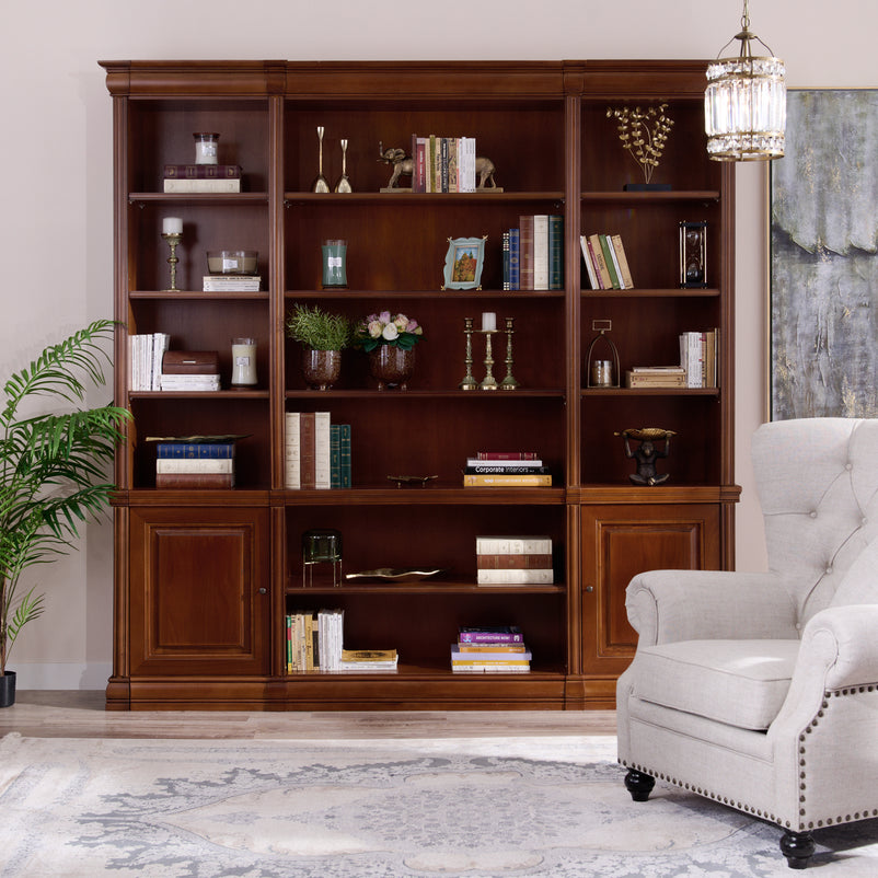 Ansamblu living Louis Philippe. Gama de mobilier Louis Philippe transformă căminul vostru într-o simfonie dedicată clasicului francez. Ansamblul living din gama Louis Philippe este o piesă de mobilier plină de eleganță, grație elementelor ce o definesc. Acesta este prevăzut cu mai multe spații, care vă oferă posibilitatea să vă depozitați lucrurile și obiectele într-un mod organizat și sigur. Ansamblul este realizat din materiale de calitate, finisajul în culoarea cireșului oferindu-i eleganță și stil. De asemenea, cromatica este deosebită, aducând decorului un aer nobil. Utilizată ca produs independent, etajera necesită achiziționarea unui set de 2 pereți terminali. Într-o compoziție personalizată, cu mai multe etajere, este necesară achiziționarea de pereți intermediari și a unui set de 2 pereți terminali. Setul de pereți terminali are rol de stabilitate și aduce un plus de eleganță prin faptul că soclul și cornișa se continuă și pe lateral. Peretele intermediar are rol de legătură între două etajere, la interiorul ansamblului. Canturile acestuia sunt rotunjite exprimând eleganță și bun gust.