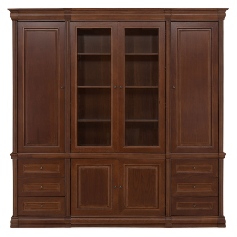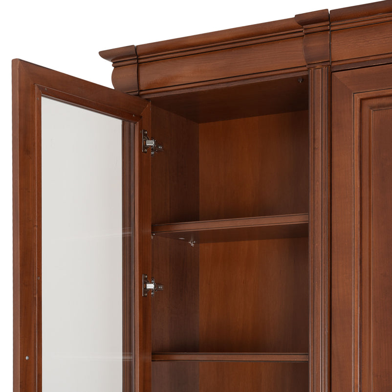 - 1x etajeră lată, 2 uși inferioare, 2 uși sticlă: L. 103 x l. 34 x H. 230 cm.