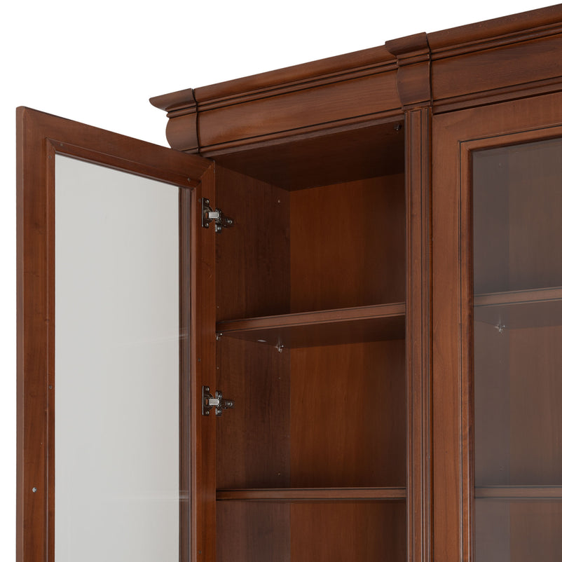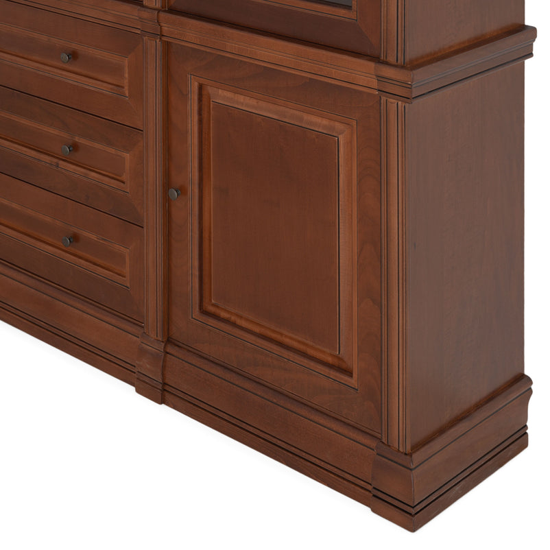 Ansamblu living Louis Philippe. Gama de mobilier Louis Philippe transformă căminul vostru într-o simfonie dedicată clasicului francez. Ansamblul living din gama Louis Philippe este o piesă de mobilier plină de eleganță, grație elementelor ce o definesc. Acesta este prevăzut cu mai multe spații, care vă oferă posibilitatea să vă depozitați lucrurile și obiectele într-un mod organizat și sigur. Ansamblul este realizat din materiale de calitate, finisajul în culoarea cireșului oferindu-i eleganță și stil. De asemenea, cromatica este deosebită, aducând decorului un aer nobil. Utilizată ca produs independent, etajera necesită achiziționarea unui set de 2 pereți terminali. Într-o compoziție personalizată, cu mai multe etajere, este necesară achiziționarea de pereți intermediari și a unui set de 2 pereți terminali. Setul de pereți terminali are rol de stabilitate și aduce un plus de eleganță prin faptul că soclul și cornișa se continuă și pe lateral. Peretele intermediar are rol de legătură între două etajere, la interiorul ansamblului. Canturile acestuia sunt rotunjite exprimând eleganță și bun gust.