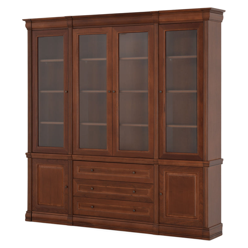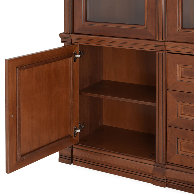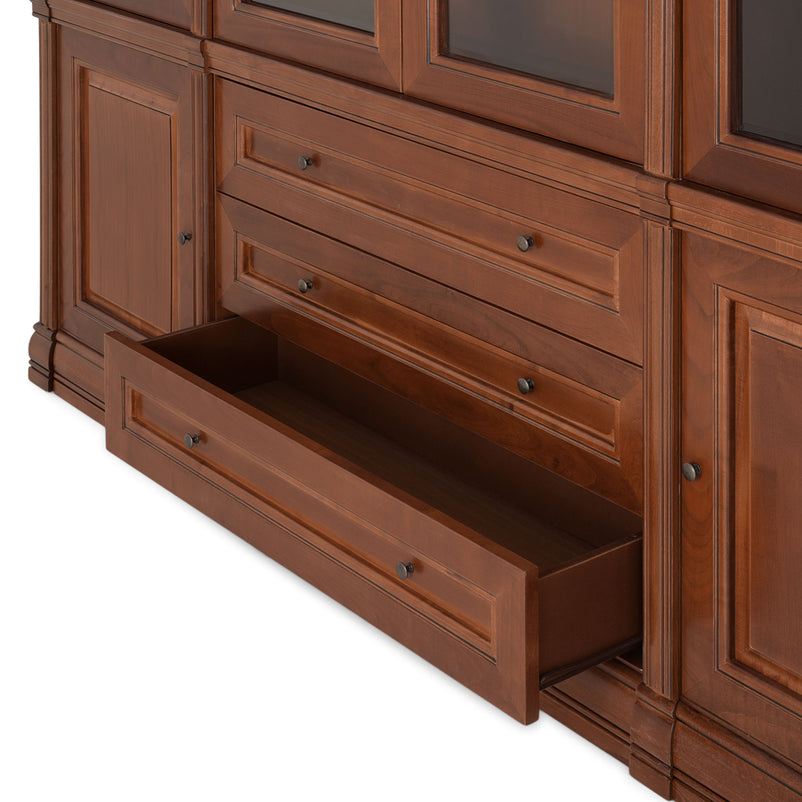 - 1x etajeră lată, 3 sertare, 2 uși sticlă: L. 103 x l. 34 x H. 230 cm.