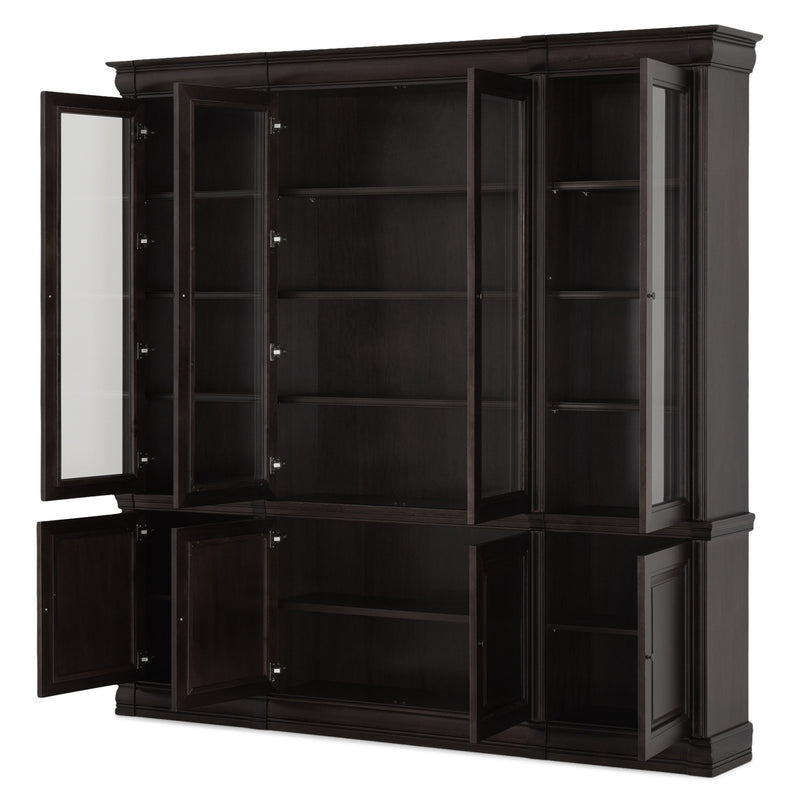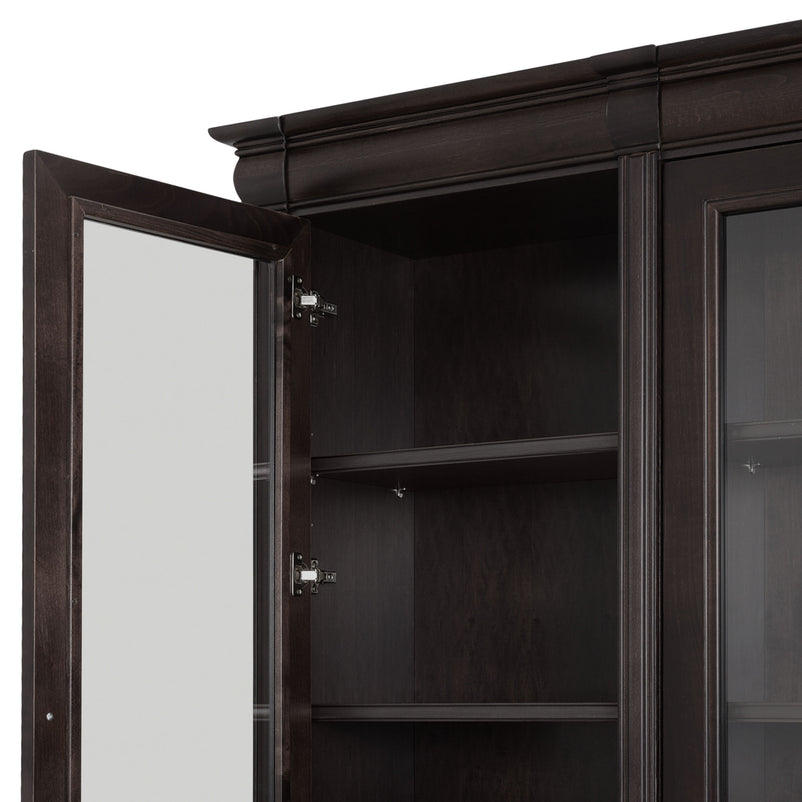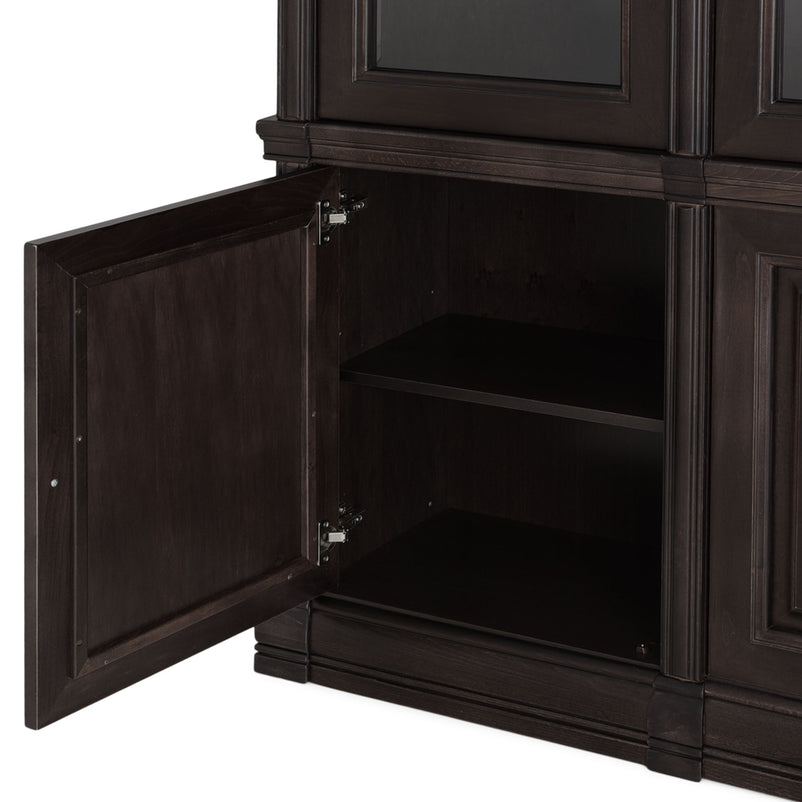 - 1x etajeră lată, 2 uși inferioare, 2 uși sticlă: L. 103 x l. 34 x H. 230 cm.