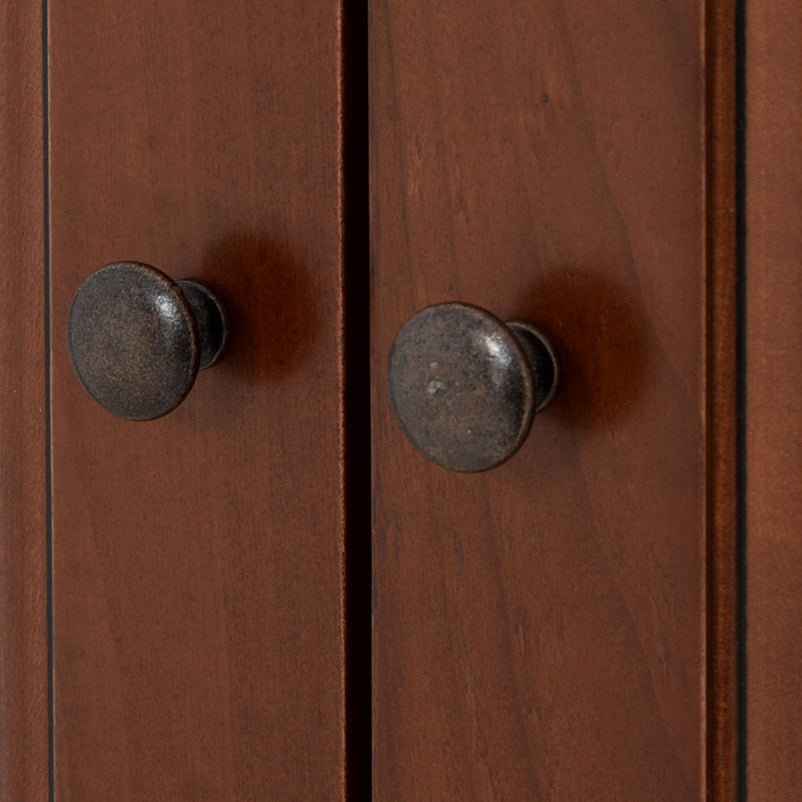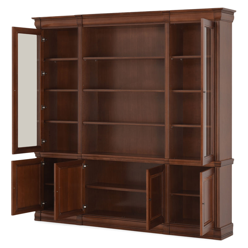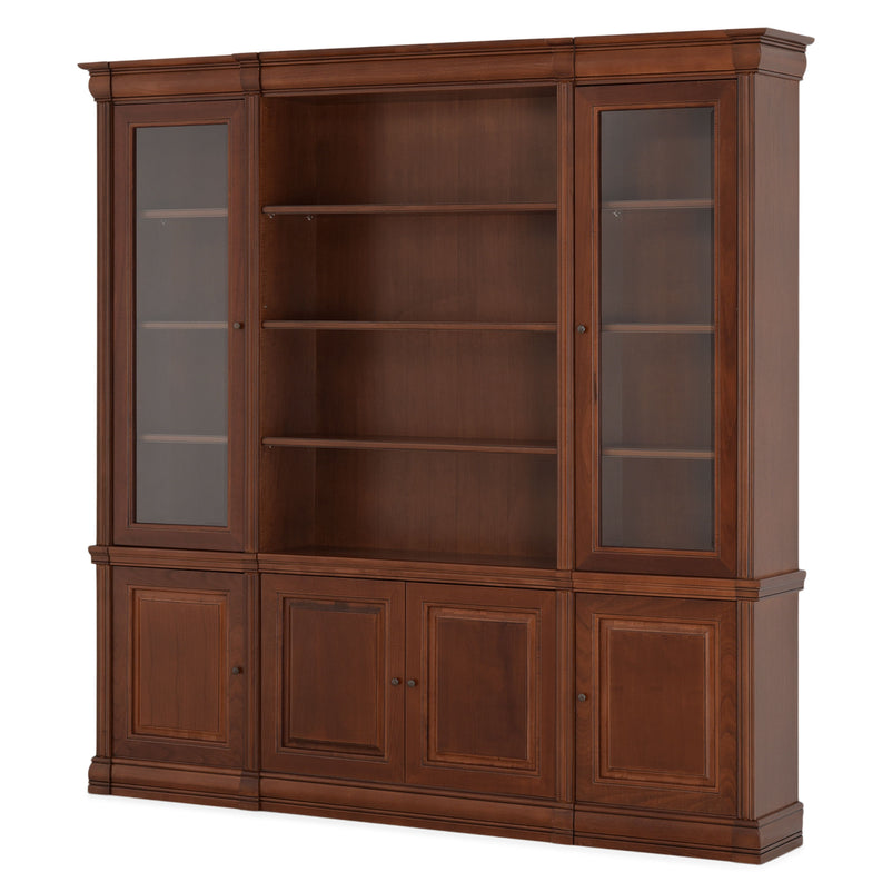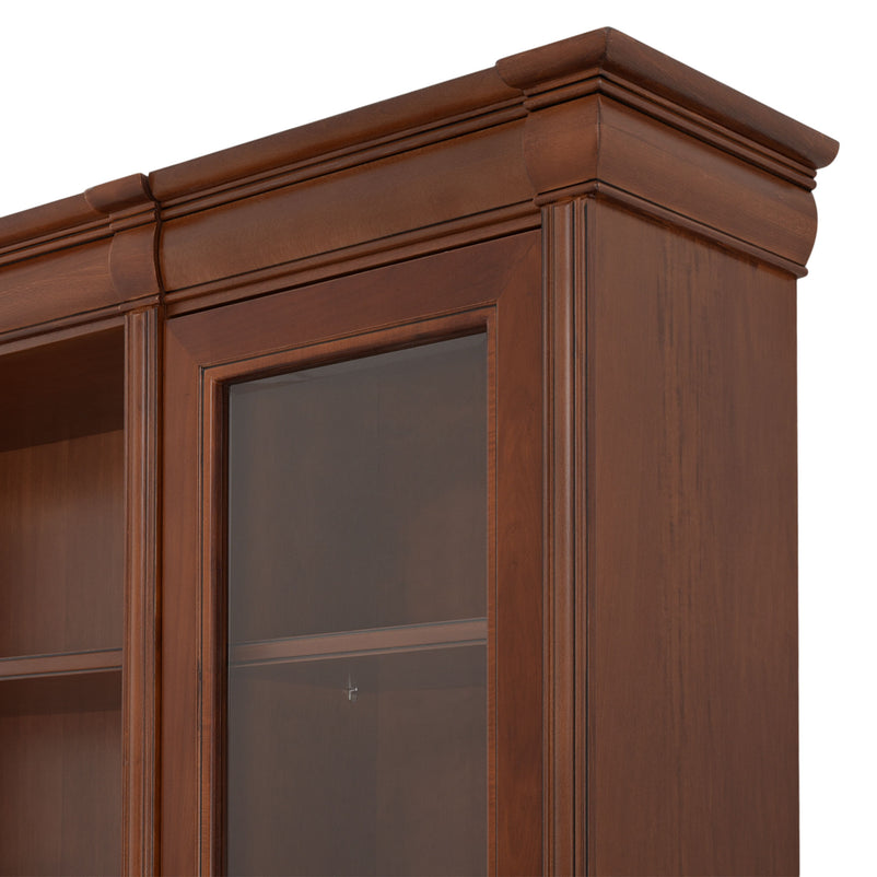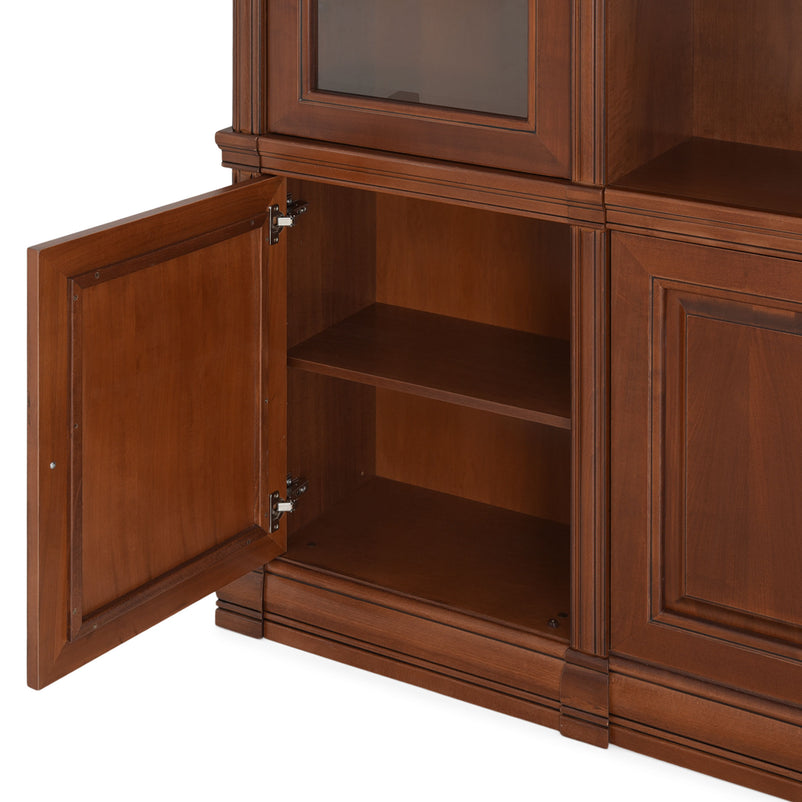 Ansamblu living Louis Philippe. Gama de mobilier Louis Philippe transformă căminul vostru într-o simfonie dedicată clasicului francez. Ansamblul living din gama Louis Philippe este o piesă de mobilier plină de eleganță, grație elementelor ce o definesc. Acesta este prevăzut cu mai multe spații, care vă oferă posibilitatea să vă depozitați lucrurile și obiectele într-un mod organizat și sigur. Ansamblul este realizat din materiale de calitate, finisajul în culoarea cireșului oferindu-i eleganță și stil. De asemenea, cromatica este deosebită, aducând decorului un aer nobil. Utilizată ca produs independent, etajera necesită achiziționarea unui set de 2 pereți terminali. Într-o compoziție personalizată, cu mai multe etajere, este necesară achiziționarea de pereți intermediari și a unui set de 2 pereți terminali. Setul de pereți terminali are rol de stabilitate și aduce un plus de eleganță prin faptul că soclul și cornișa se continuă și pe lateral. Peretele intermediar are rol de legătură între două etajere, la interiorul ansamblului. Canturile acestuia sunt rotunjite exprimând eleganță și bun gust.