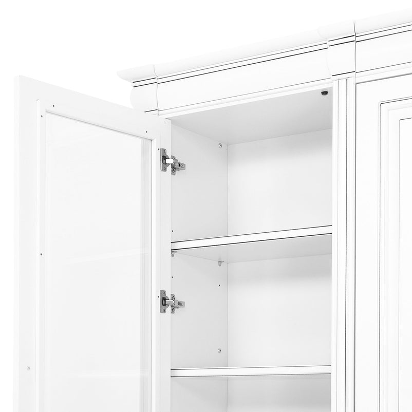 - 1x etajeră lată, 2 uși inferioare și 2 uși pline: L. 103 x l. 34 x H. 230 cm.