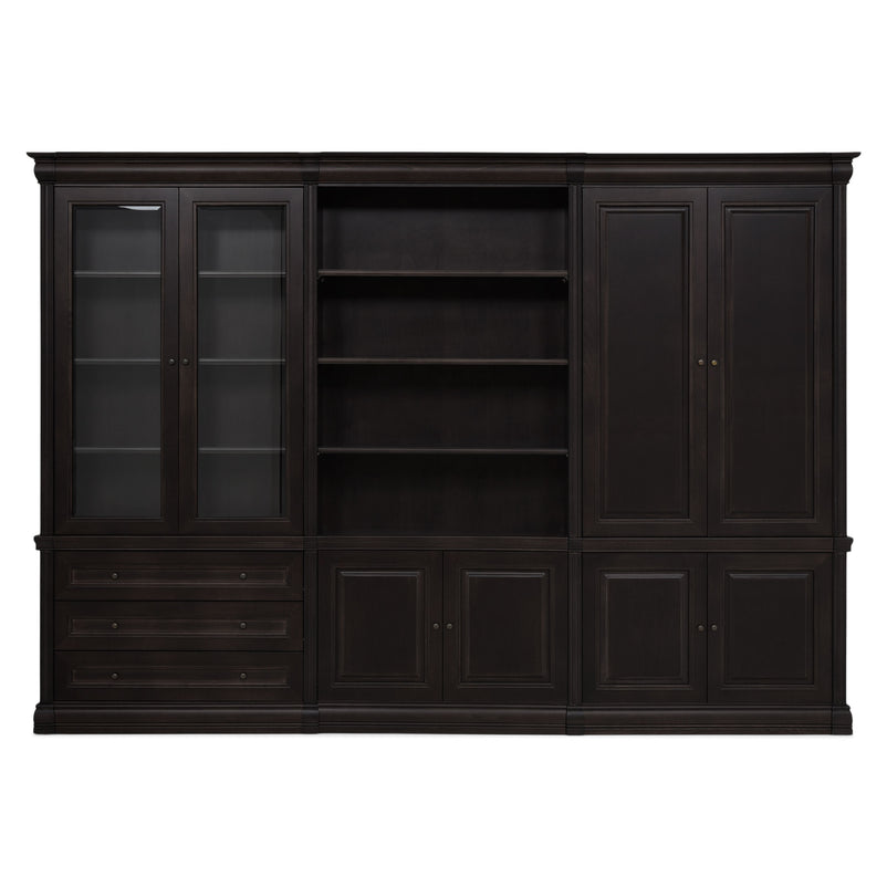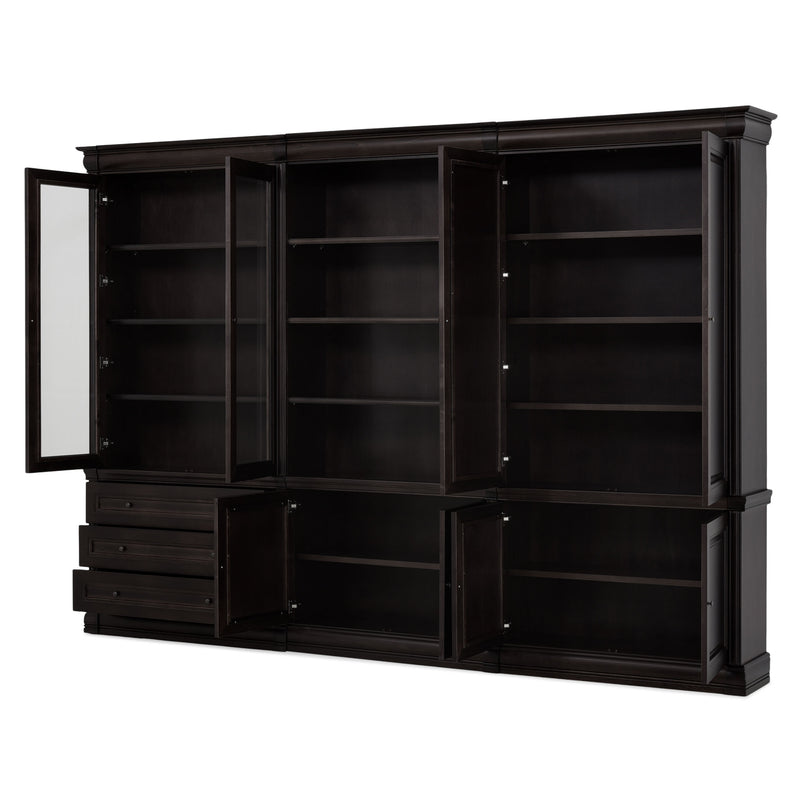 - 1x etajeră lată, 3 sertare, 2 uși sticlă: L. 103 x l. 34 x H. 230 cm.