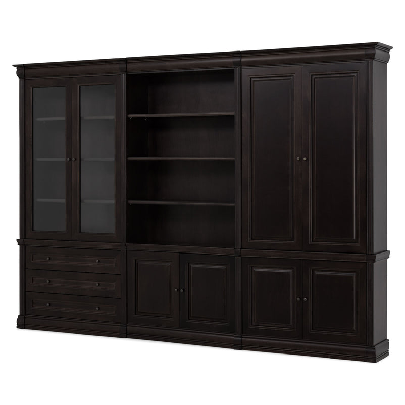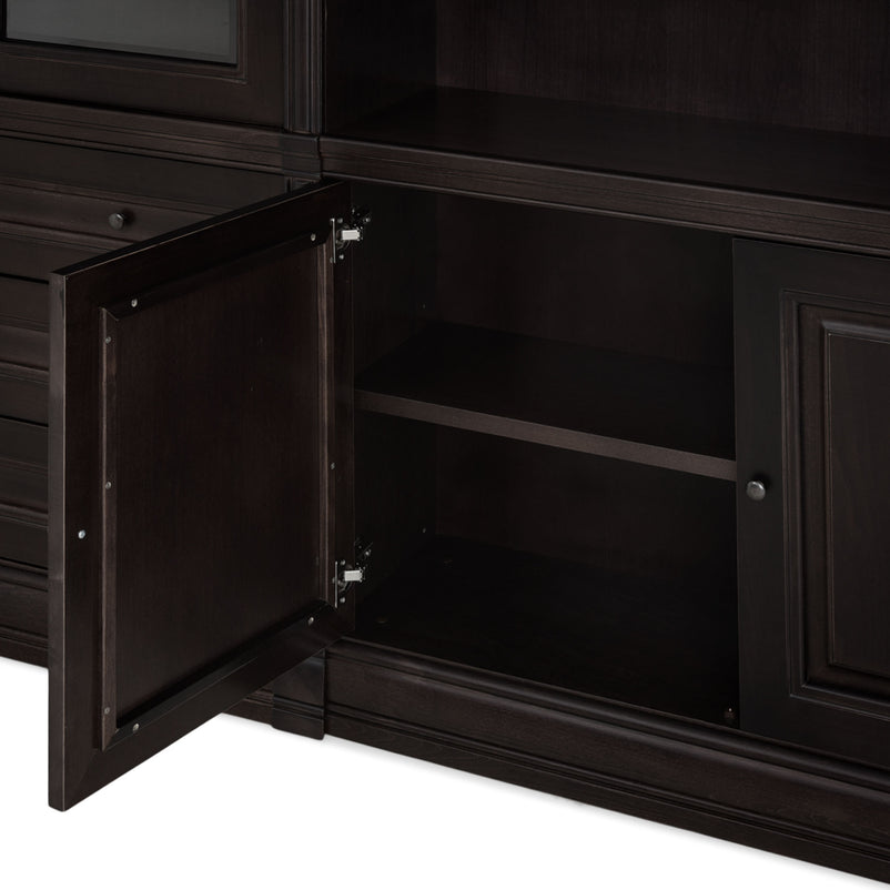 Ansamblu living Chocolate. Gama de mobilier Chocolate relevă sobrietate și eleganță, grație elementelor ce o definesc, rezultând forma clasicului francez fără vârstă. Ansamblul living se potrivește pentru a amenaja o cameră spațioasă. Realizată în linii clasice și decorată cu detalii fine, aceasta amenajează o zonă practică și bine organizată datorită spațiilor de depozitare, care oferă un spațiu generos pentru așezarea diferitelor decorațiuni sau obiecte. Cromatica este sobră, aducând decorului un aer rafinat. Utilizată ca produs independent, etajera necesită achiziționarea unui set de 2 pereți terminali. Într- o compoziție personalizată, cu mai multe etajere, este necesară achiziționarea de pereți intermediari și a unui set de 2 pereți terminali. Setul de pereți terminali are rol de stabilitate și aduce un plus de eleganță prin faptul că soclul și cornișa se continuă și pe lateral. Peretele intermediar are rol de legătură între două etajere, la interiorul ansamblului.