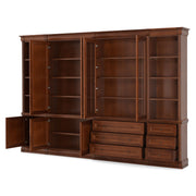 - 1x etajeră lată, 3 sertare, 2 uși sticlă: L. 103 x l. 34 x H. 230 cm.