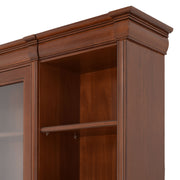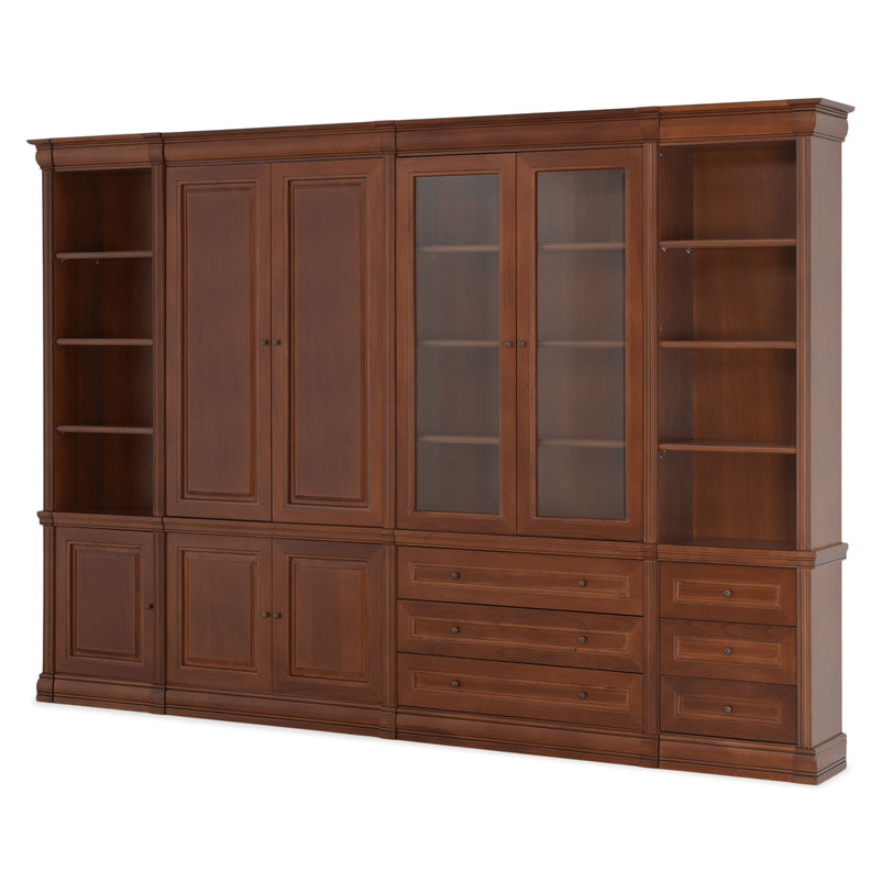 Ansamblu living Louis Philippe. Gama de mobilier Louis Philippe transformă căminul vostru într-o simfonie dedicată clasicului francez. Ansamblul living din gama Louis Philippe este o piesă de mobilier plină de eleganță, grație elementelor ce o definesc. Acesta este prevăzut cu mai multe spații, care vă oferă posibilitatea să vă depozitați lucrurile și obiectele într-un mod organizat și sigur. Ansamblul este realizat din lemn masiv, MDF și panouri aglomerate din lemn, finisajul în culoarea cireșului oferindu-i eleganță și stil. De asemenea, cromatica este deosebită, aducând decorului un aer nobil. Utilizată ca produs independent, etajera necesită achiziționarea unui set de 2 pereți terminali. Într-o compoziție personalizată, cu mai multe etajere, este necesară achiziționarea de pereți intermediari și a unui set de 2 pereți terminali. Setul de pereți terminali are rol de stabilitate și aduce un plus de eleganță prin faptul că soclul și cornișa se continuă și pe lateral. Peretele intermediar are rol de legătură între două etajere, la interiorul ansamblului. Canturile acestuia sunt rotunjite exprimând eleganță și bun gust.