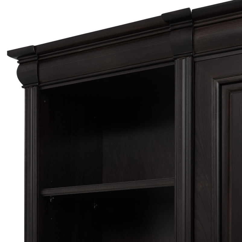 Ansamblu living Chocolate. Gama de mobilier Chocolate relevă sobrietate și eleganță, grație elementelor ce o definesc, rezultând forma clasicului francez fără vârstă. Ansamblul living se potrivește pentru a amenaja o cameră spațioasă. Realizată în linii clasice și decorată cu detalii fine, aceasta amenajează o zonă practică și bine organizată datorită spațiilor de depozitare, care oferă un spațiu generos pentru așezarea diferitelor decorațiuni sau obiecte. Cromatica este sobră, aducând decorului un aer rafinat. Ansamblul este construit din lemn masiv, MDF și panouri aglomerate din lemn, iar finisajul în culoarea ciocolatei îi asigură un aspect aspectuos. Utilizată ca produs independent, etajera necesită achiziționarea unui set de 2 pereți terminali. Într- o compoziție personalizată, cu mai multe etajere, este necesară achiziționarea de pereți intermediari și a unui set de 2 pereți terminali. Setul de pereți terminali are rol de stabilitate și aduce un plus de eleganță prin faptul că soclul și cornișa se continuă și pe lateral. Peretele intermediar are rol de legătură între două etajere, la interiorul ansamblului.