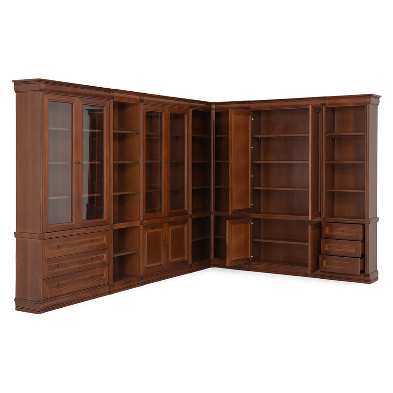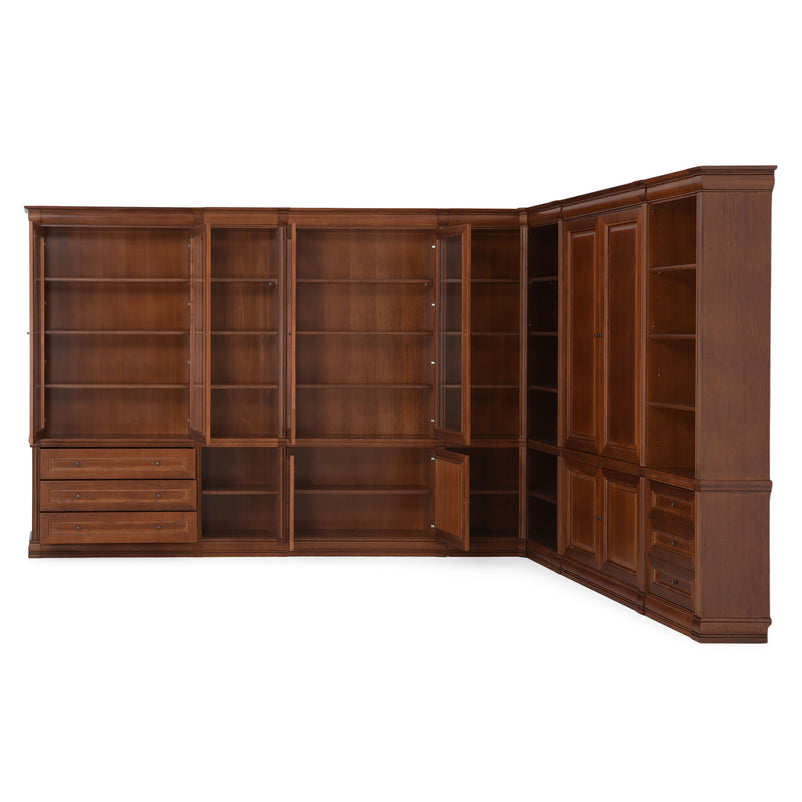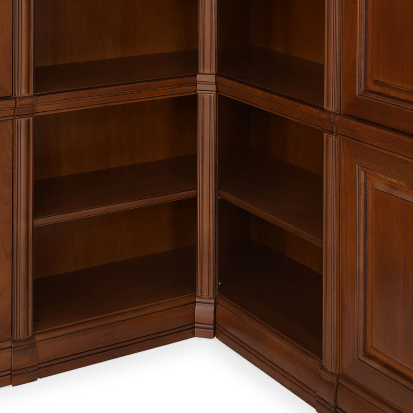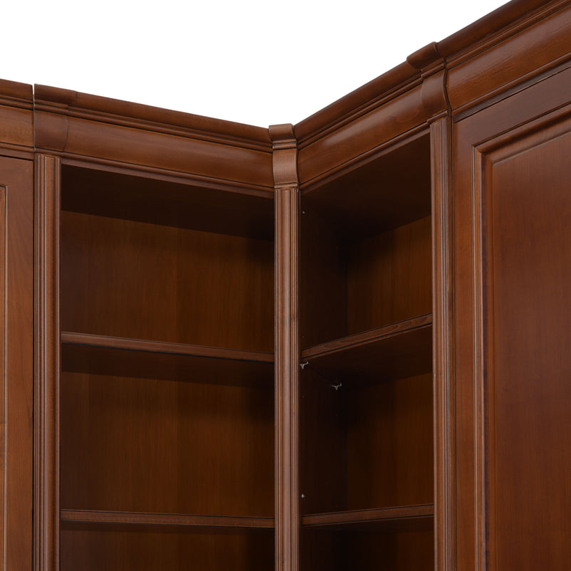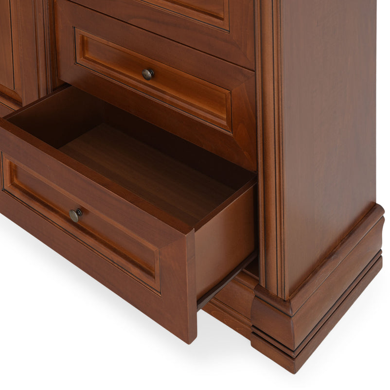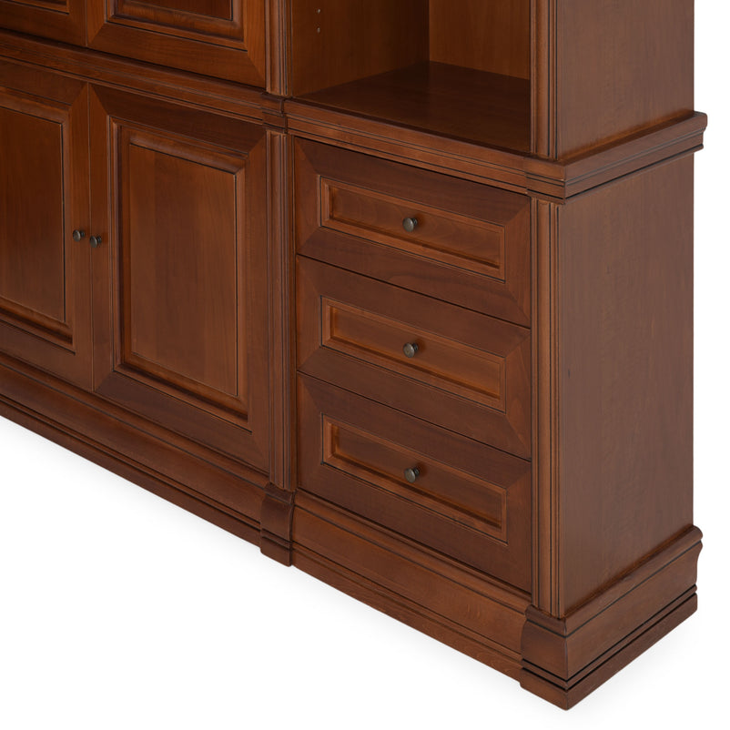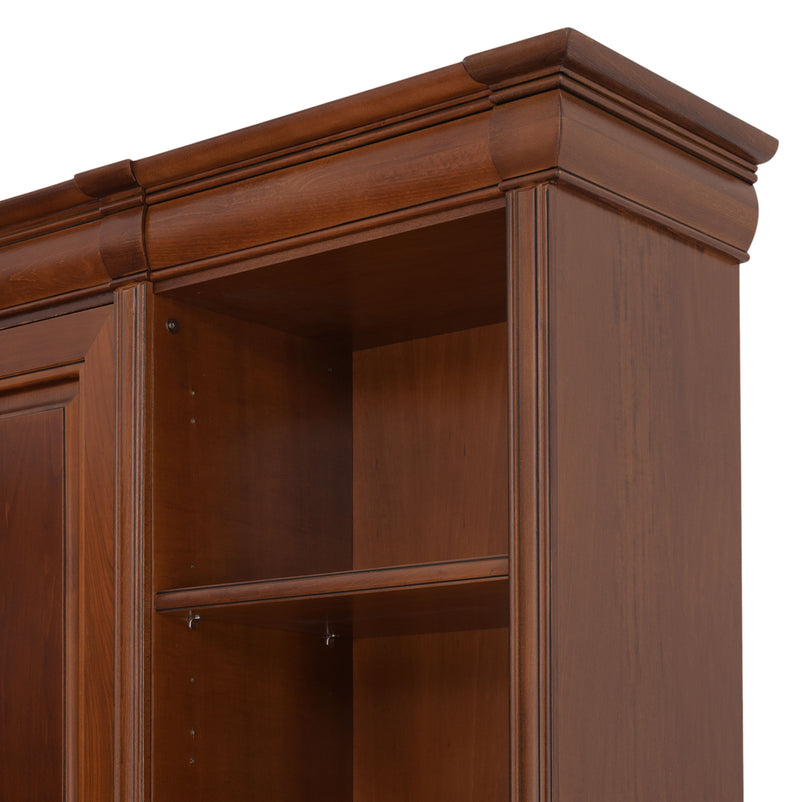 Ansamblu living Louis Philippe. Gama de mobilier Louis Philippe transformă căminul vostru într-o simfonie dedicată clasicului francez. Ansamblul living din gama Louis Philippe este o piesă de mobilier plină de eleganță, grație elementelor ce o definesc. Acesta este prevăzut cu mai multe spații, care vă oferă posibilitatea să vă depozitați lucrurile și obiectele într-un mod organizat și sigur. Ansamblul este realizat din materiale de calitate, finisajul în culoarea cireșului oferindu-i eleganță și stil. De asemenea, cromatica este deosebită, aducând decorului un aer nobil. Utilizată ca produs independent, etajera necesită achiziționarea unui set de 2 pereți terminali. Într-o compoziție personalizată, cu mai multe etajere, este necesară achiziționarea de pereți intermediari și a unui set de 2 pereți terminali. Setul de pereți terminali are rol de stabilitate și aduce un plus de eleganță prin faptul că soclul și cornișa se continuă și pe lateral. Peretele intermediar are rol de legătură între două etajere, la interiorul ansamblului. Canturile acestuia sunt rotunjite exprimând eleganță și bun gust.