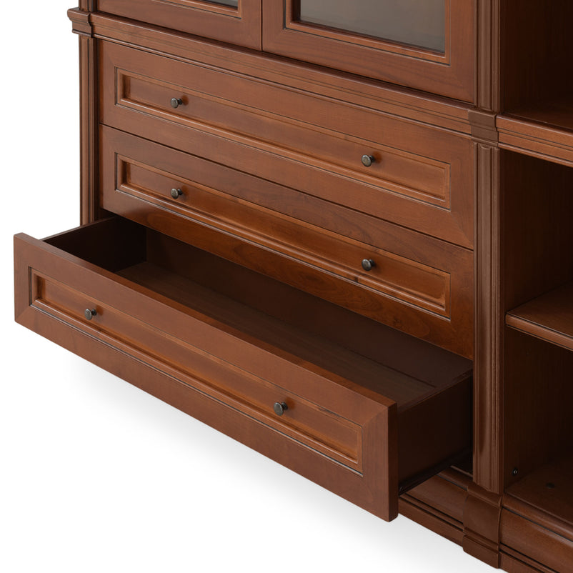 - 1x etajeră lată, 3 sertare, 2 uși sticlă: L. 103 x l. 34 x H. 230 cm.