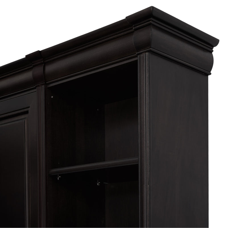 Ansamblu living Chocolate. Gama de mobilier Chocolate relevă sobrietate și eleganță, grație elementelor ce o definesc, rezultând forma clasicului francez fără vârstă. Ansamblul living se potrivește pentru a amenaja o cameră spațioasă. Realizată în linii clasice și decorată cu detalii fine, aceasta amenajează o zonă practică și bine organizată datorită spațiilor de depozitare, care oferă un spațiu generos pentru așezarea diferitelor decorațiuni sau obiecte. Cromatica este sobră, aducând decorului un aer rafinat. Utilizată ca produs independent, etajera necesită achiziționarea unui set de 2 pereți terminali. Într- o compoziție personalizată, cu mai multe etajere, este necesară achiziționarea de pereți intermediari și a unui set de 2 pereți terminali. Setul de pereți terminali are rol de stabilitate și aduce un plus de eleganță prin faptul că soclul și cornișa se continuă și pe lateral. Peretele intermediar are rol de legătură între două etajere, la interiorul ansamblului.