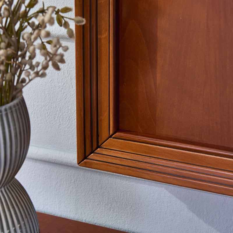 Aceasta reprezintă o soluție ideală pentru încadrarea plasmei TV în perete și are un decupaj potrivit pentru trecerea cablurilor. De asemenea, cromatica este deosebită, aducând decorului un aer nobil.