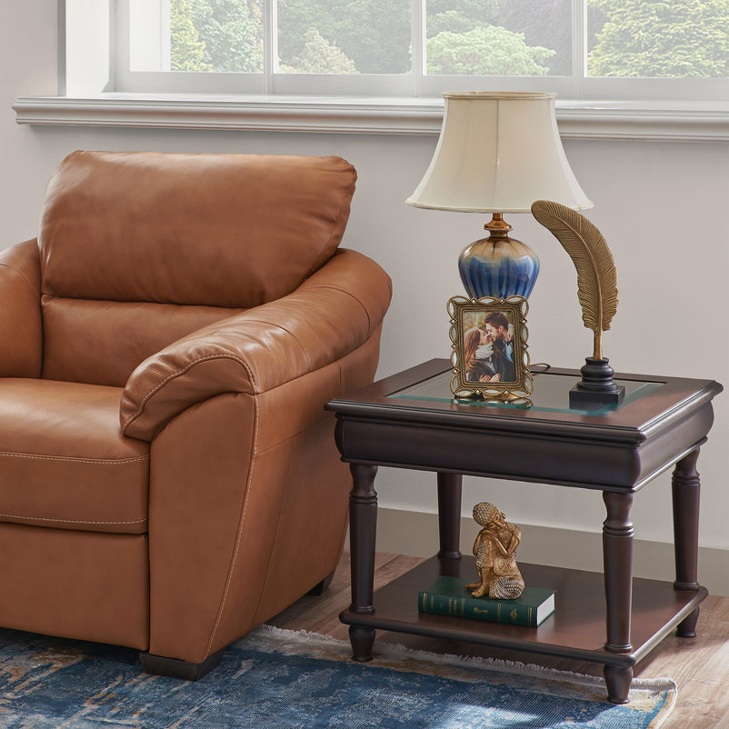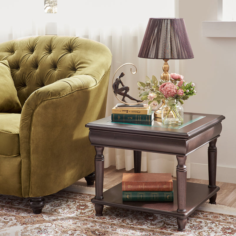 Măsuță colț Chocolate. Gama Chocolate se poate integra cu succes în spații pline de eleganță, datorită aspectului său deosebit, accentuând bunul gust al locului. Masa din gama Chocolate este rezultatul clasicului francez fără vârstă, combinat cu un finisaj aspectuos. Realizată în linii clasice și decorată cu detalii fine, aceasta este potrivită pentru a așeza diverse obiecte sau decorațiuni. Cromatica este sobră, aducând decorului un aer rafinat.
