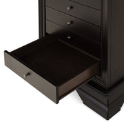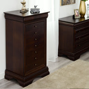 Comodă 7 sertare Chocolate. Gama Chocolate se poate integra cu succes în spații pline de eleganță, datorită aspectului său deosebit, accentuând bunul gust al locului. Comoda din gama Chocolate este rezultatul clasicului francez fără vârstă, combinat cu un finisaj aspectuos. Realizată în linii clasice și decorată cu detalii fine, comoda are 8 sertare potrivite pentru a depozita într-un mod cât mai organizat lucrurile voastre. Cromatica este sobră, aducând decorului un aer rafinat.
