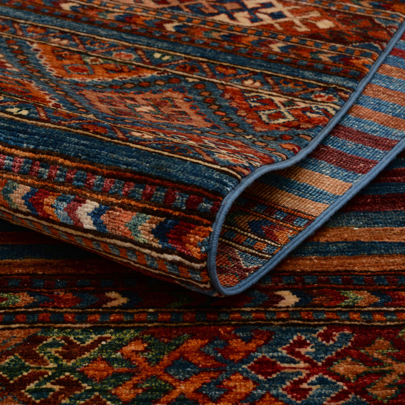 Covor cameră Khorjeen. Covoarele Khorjeen sunt înnodate manual, nod cu nod, cu o atenție deosebită la detalii, garantând o calitate superioară și o rezistență îndelungată. Designul covoarelor Khorjeen este cunoscut pentru versatilitatea și eleganța atemporală, care le permite să se integreze cu ușurință în orice tip de amenajare.