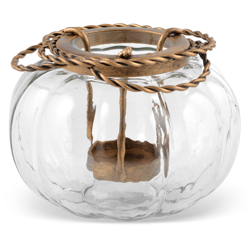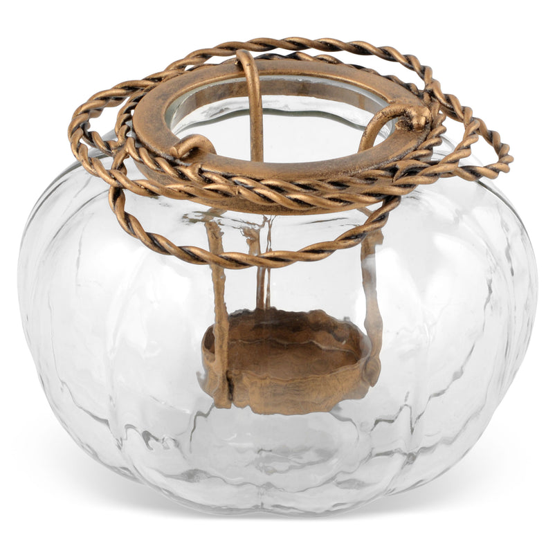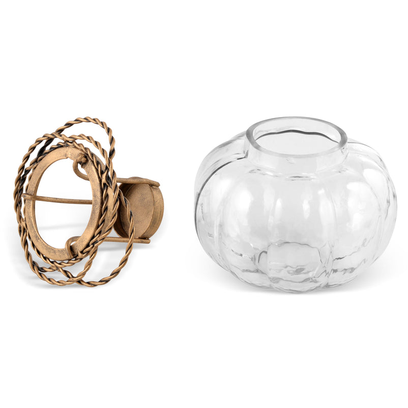 Suport lumânare Pumpkin. Suportul de lumânare din gama Pumpkin aduce un plus stilistic și distinctiv în decorul din spațiul vostru. Suportul este realizat din sticlă și metal, cu un design în formă de dovleac, care se va remarca plăcut oriunde o veți așeza.