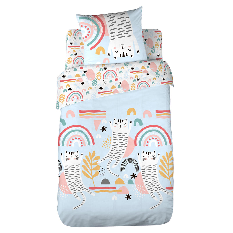 Set așternut 2 piese copii Chat. Setul de așternut Chat creează un mediu prielnic pentru ca cea mică să se odihnească și să crească. Acesta este confecționat integral din bumbac organic, oferindu-i catifelare la atingere, iar pentru un design atrăgător, setul are un finisaj imprimat colorat.
