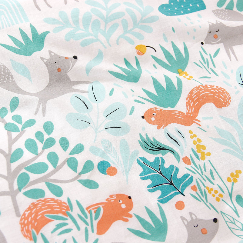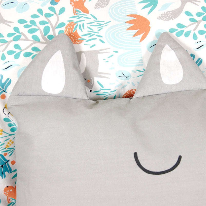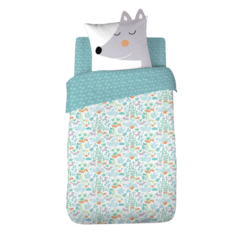Set așternut 2 piese copii. Creați o atmosferă primitoare și luminoasă pentru copilul vostru, amenajându-i dormitorul cu ajutorul așternuturilor pentru pat din gama Nous Promenons, realizate integral din bumbac bio. Piesele setului iterează călătoria prietenoasă a veveriței și a vulpii printre motivele inspirate de natură.