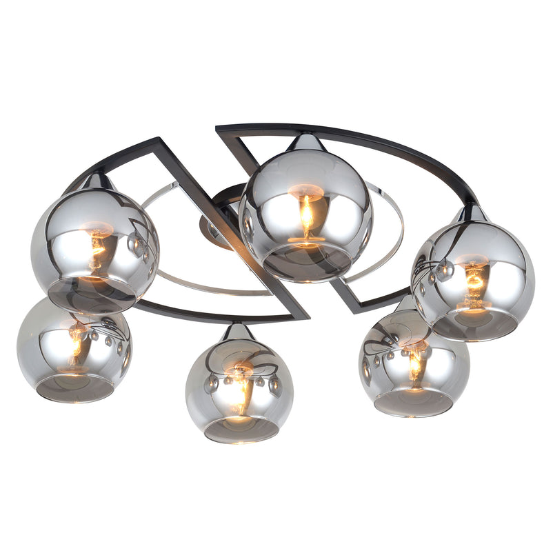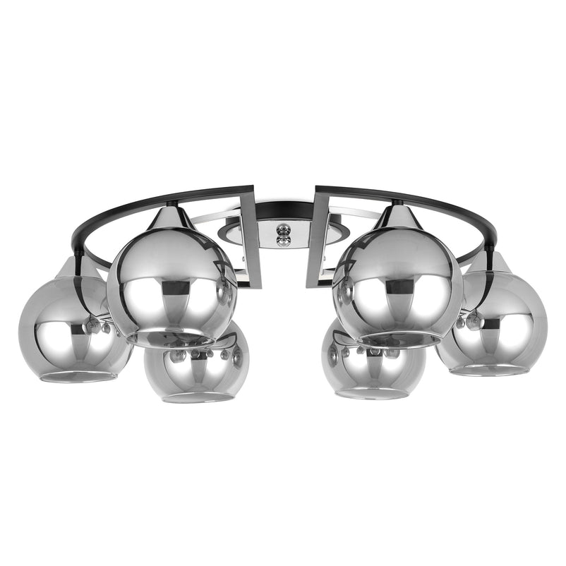 Plafoniera Dotty. Plafoniera din gama Dotty asigură un plus de lumină și aduce o notă elegantă și versatilă în spațiul vostru. Plafoniera este realizată din metal, cu abajururi din sticlă, iar cromatica argintie o integrează cu ușurință în orice decor.