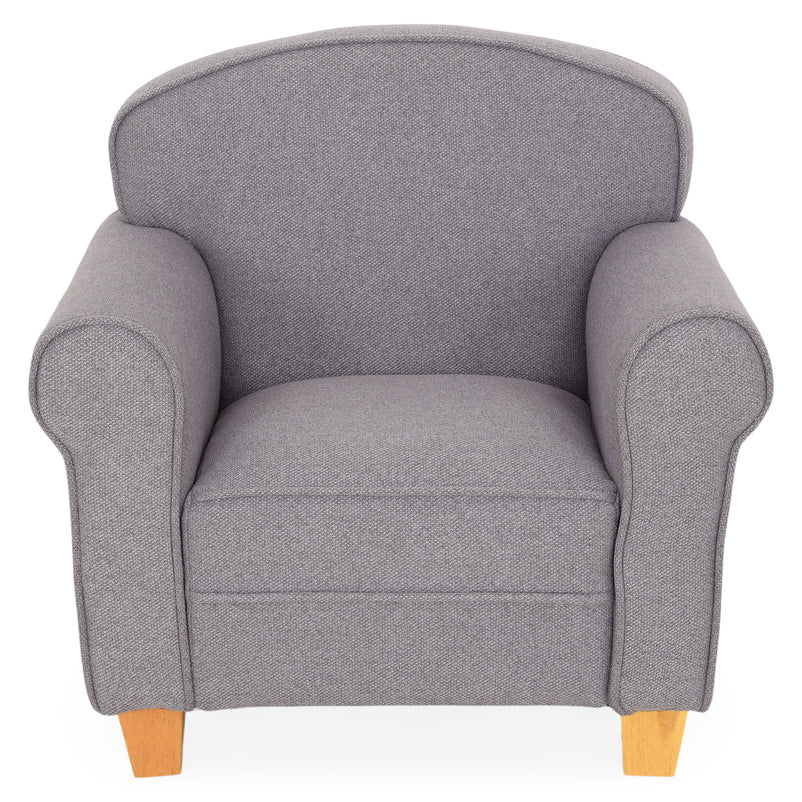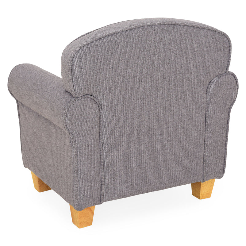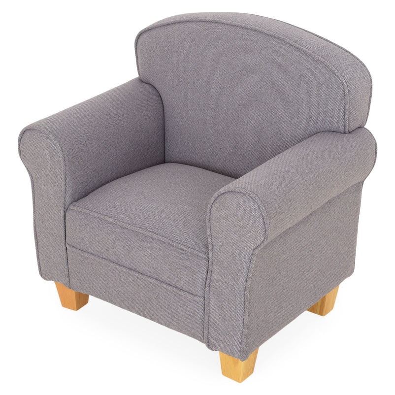 Fotoliu copii Teeny. Create din dragoste pentru copii, cu forme rotunjite și materiale rezistente, fotoliile și canapelele din această colecție sunt destinate celor mici, pentru ca aceștia să se simtă iubiți și răsfățați. Designul și dimensiunile sale îl recomandă ca fiind ideal pentru camera sau spațiul în care prichindelul se joacă sau se relaxează. Cadru este realizat din lemn masiv acoperit cu spumă poliuretanică de înaltă densitate, tapitat cu stofă gri. Picioarele sunt realizate din lemn masiv de cauciuc. Fotoliul Teeny se recomandă a fi utilizat de către copii cu vârste între 1-6 ani.
