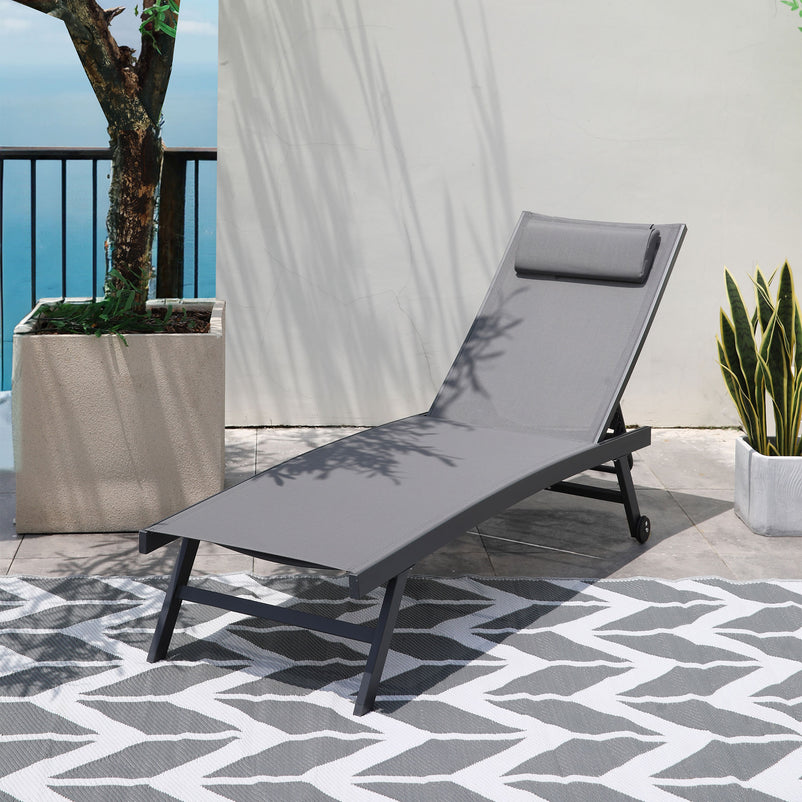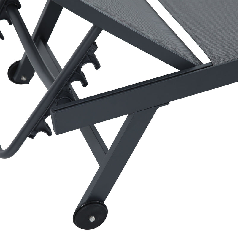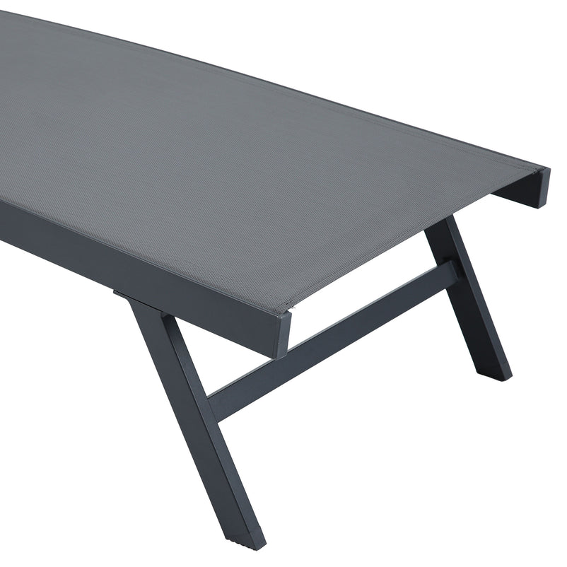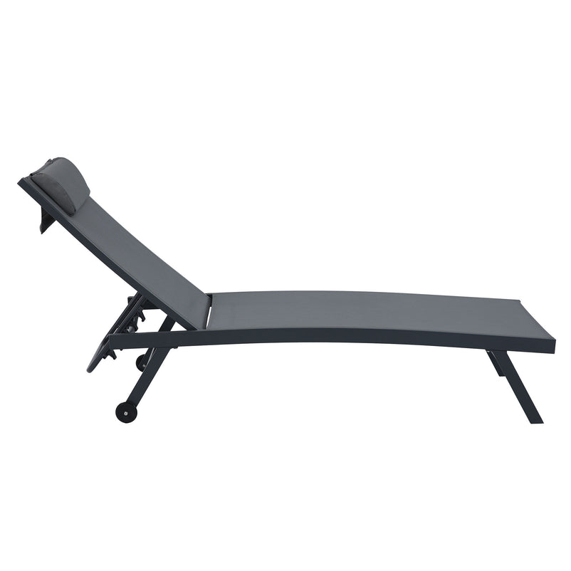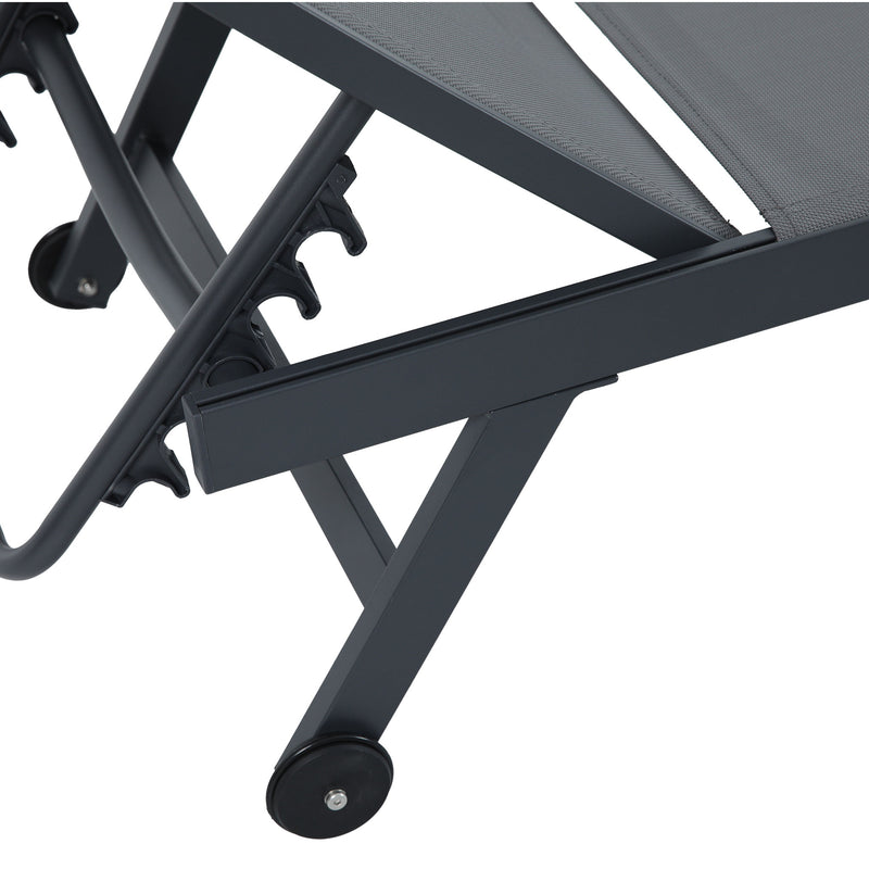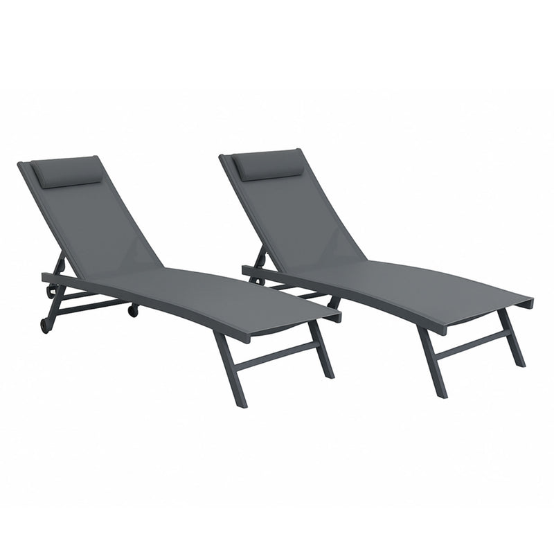 Set 2 șezlonguri Bogota. Setul Bogota include 2 șezlonguri cu design modern și structură ușoară din aluminiu vopsit în câmp electrostatic, rezistentă la coroziune și intemperii. Șezlongurile sunt prevăzute cu spătar reglabil și roți discrete pentru manevrare ușoară. Ideal pentru piscină, terasă sau grădină, acest set îmbină confortul cu eleganța minimalistă.